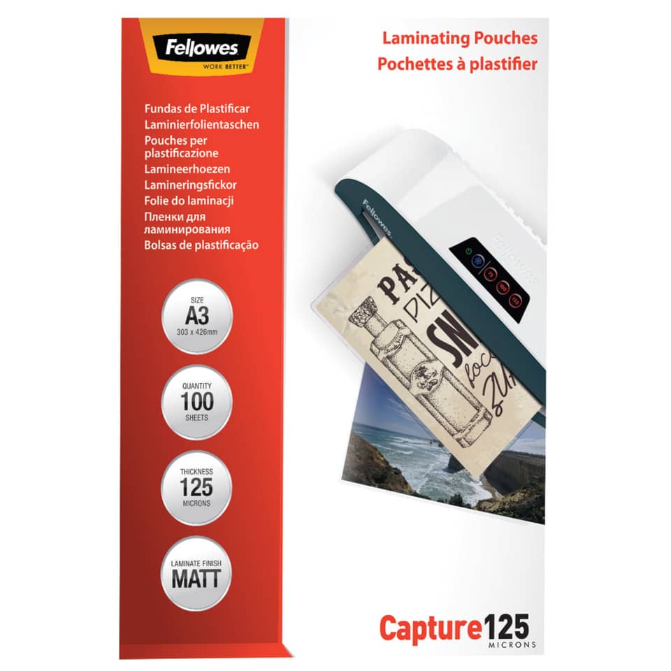 Pouches A3 per plastificatrici Fellowes – 125µm per lato – lucida (conf.100)