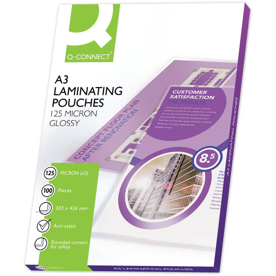 Pouches A3 per plastificatrice Q-Connect 2×125µm finitura lucida (conf.100)