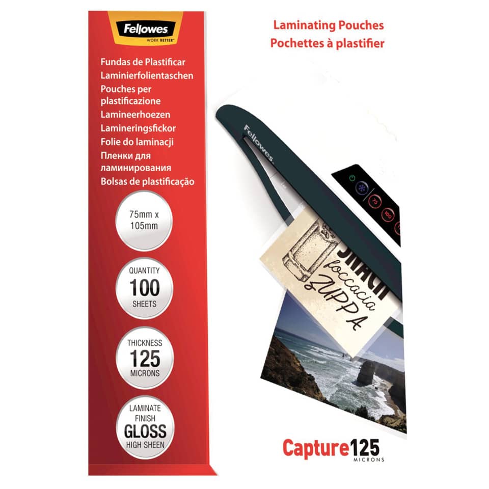 Pouches piccoli formati Fellowes – 9,5×10,5 cm – finitura lucida – 125µm (conf.100)