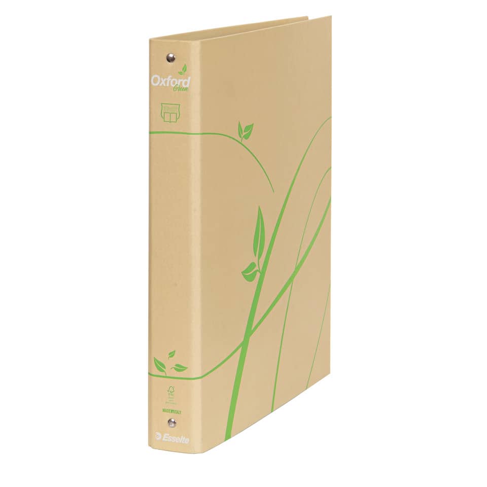 Raccoglitore ad anelli Esselte Oxford Green D30 f.to 22×30 cm 100% carta riciclata avana – 397850502