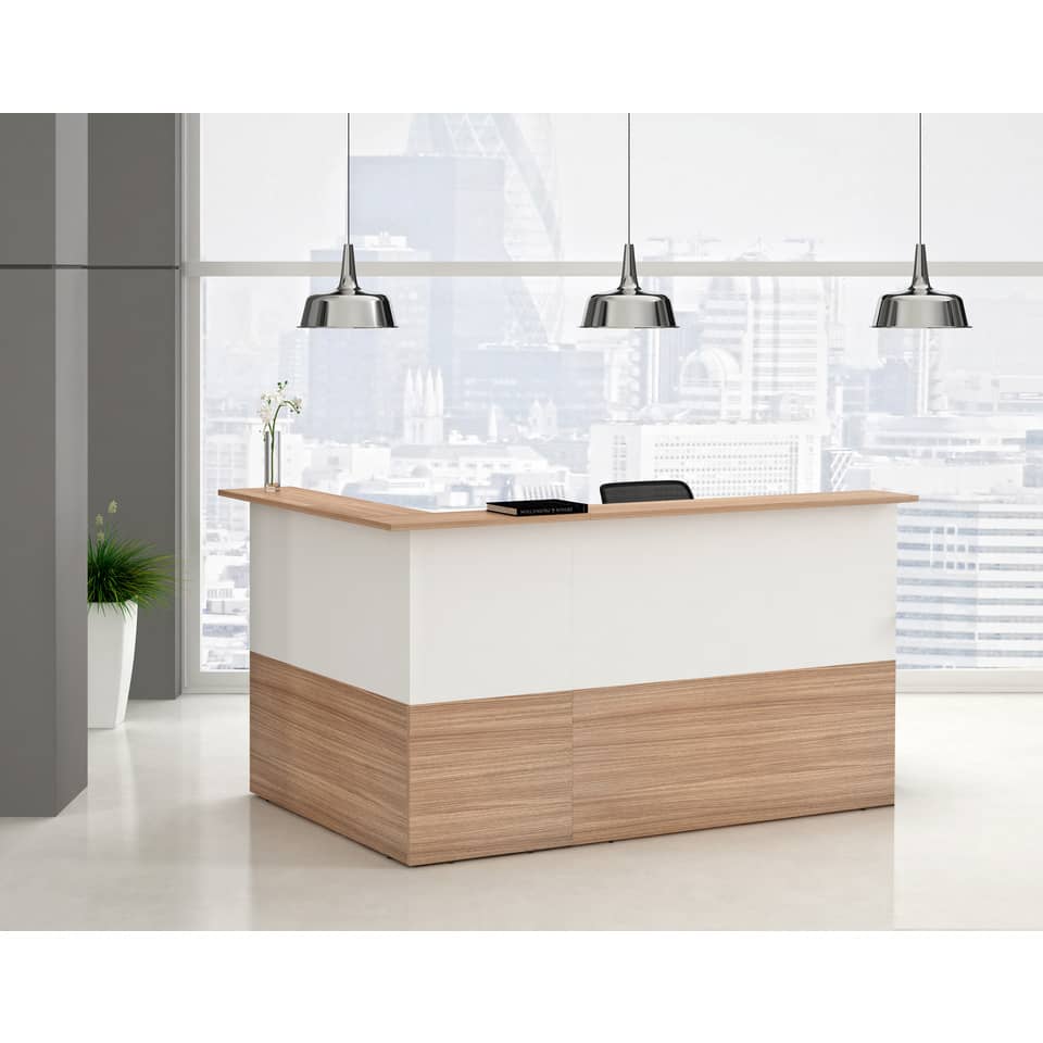 Questa scrivania con rialzo per bancone reception è dotata di: