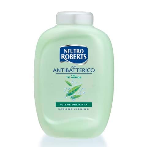 Confezione da 2 pezzi di Ricarica Sapone Liquido Neutro Roberts Antibatterico. Rimuove i batteri e protegge la pelle grazie al TE’ VERDE, ingrediente naturale dalle note proprietà antibatteriche e igienizzanti. Si ricava dalle foglie giovani della pianta conosciuta come "Camellia Sinensis", le cui molteplici proprietà erano note in Cina e in Giappone fin dai tempi antichi. Formule delicate, dermatologicamente testate per comprovarne la tollerabilità cutanea, sviluppate nel pieno rispetto della pelle.