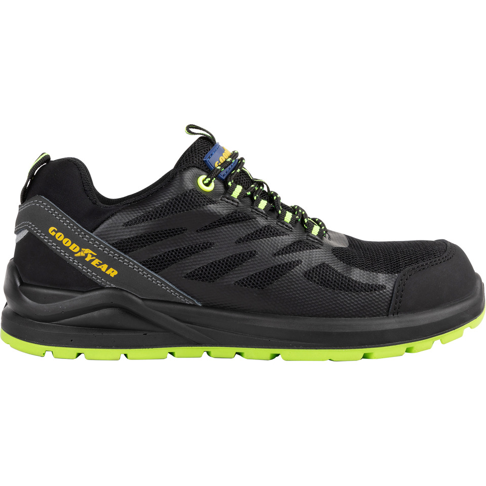 Scarpe antinfortunistiche in tomaia KPU e mesh Goodyear GY BLACKBAT S1P nero-verde TG.36 - 729636