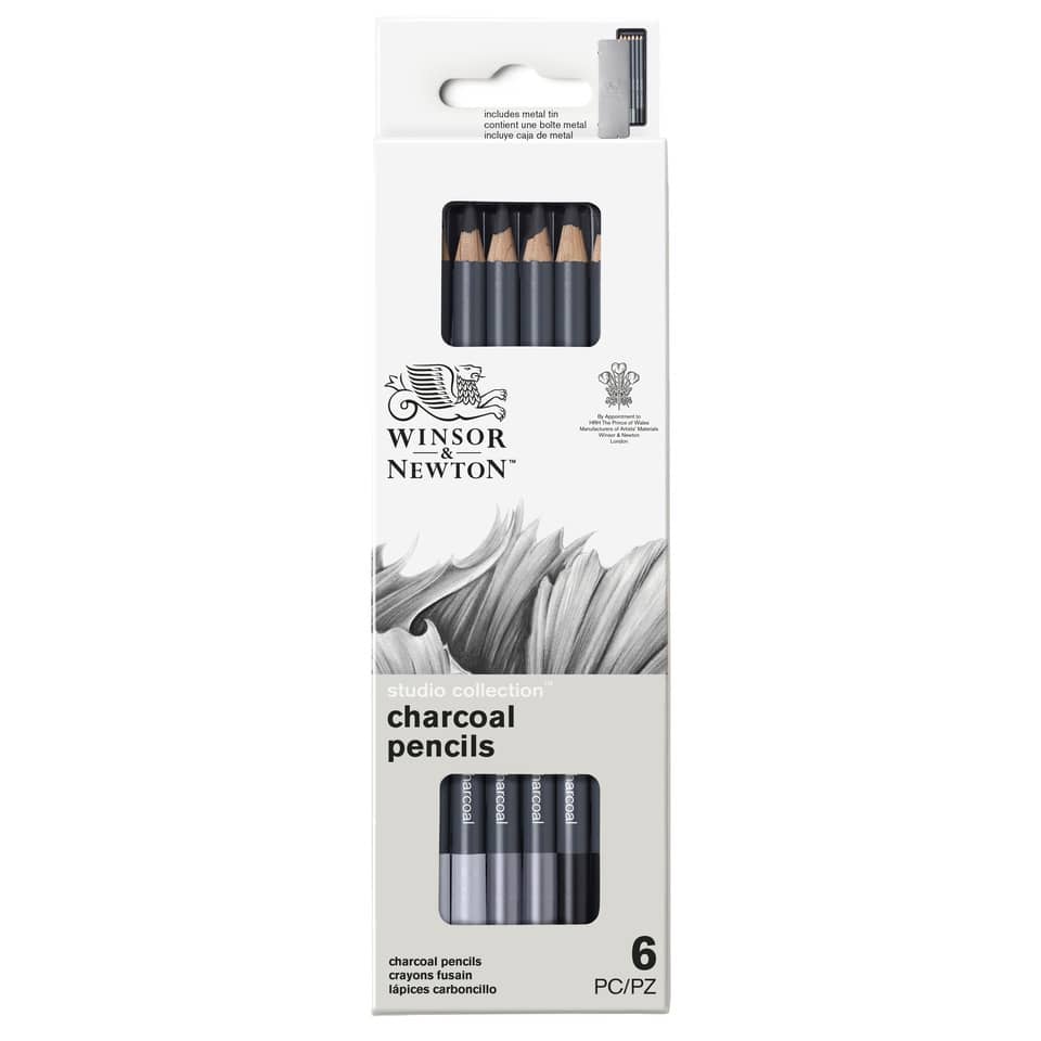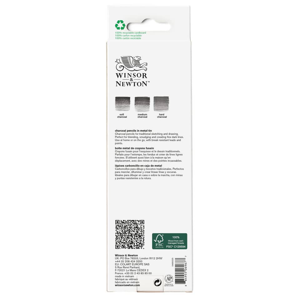 Scatola in metallo composta da sei matite in carboncino Winsor&Newton. Mina di alta qualità centrata ed incollata su tutta la lunghezza: estremamente resistente alla rottura. Codice produttore: 0490025