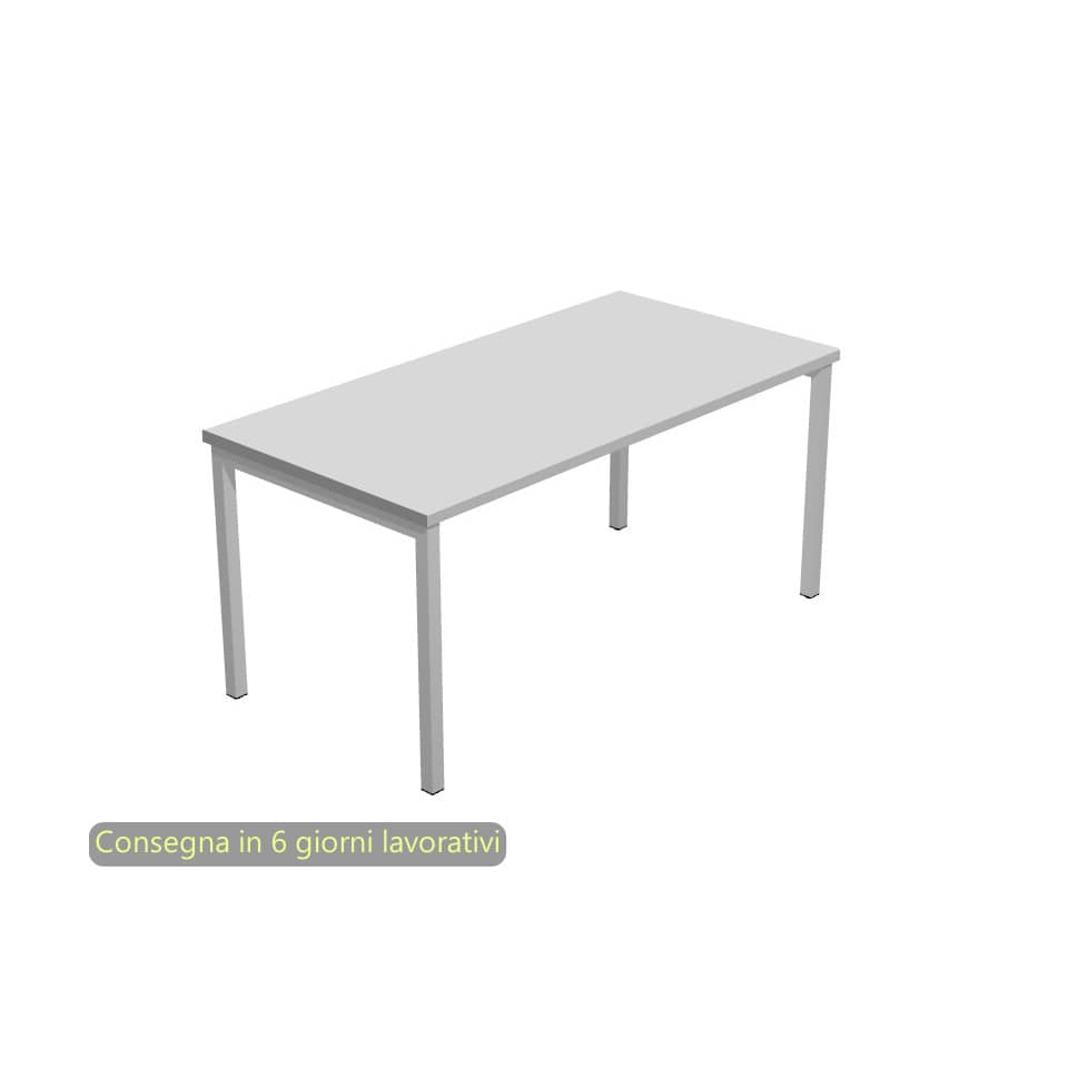La struttura metallica è a sezione quadrata 40x40 mm verniciata a polveri epossidiche colore alluminio ed è composta, nella scrivania a ponte, da due fianchi “a cavalletto” uniti da una traversa centrale alla quale è possibile agganciare la traversa del ritorno, sia sulla destra che sulla sinistra.