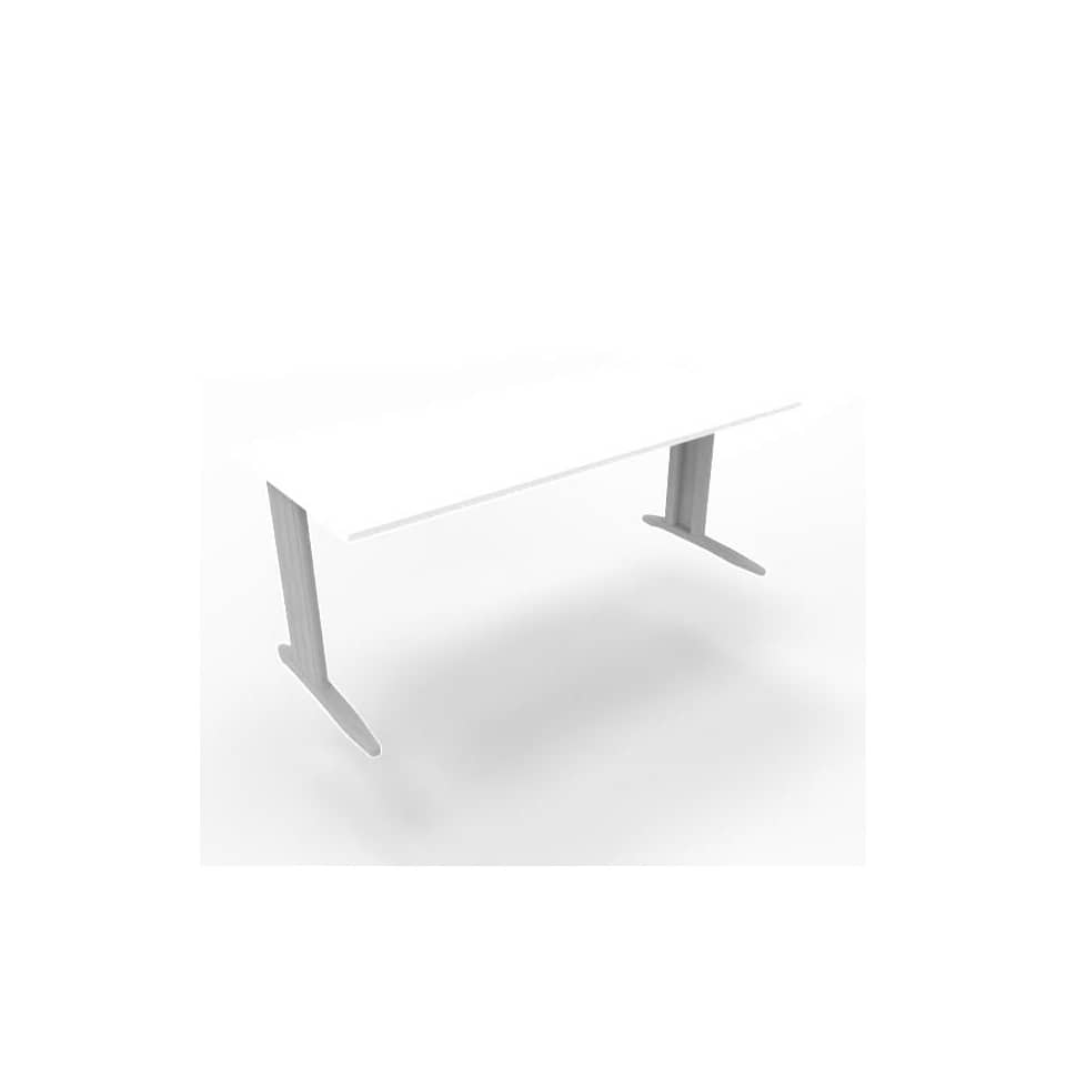 Scrivania piano Bianco 180x80xh.75 cm gamba a L in acciaio Argento linea Practika P1 Quadrifoglio - ECSMT180-BA-A