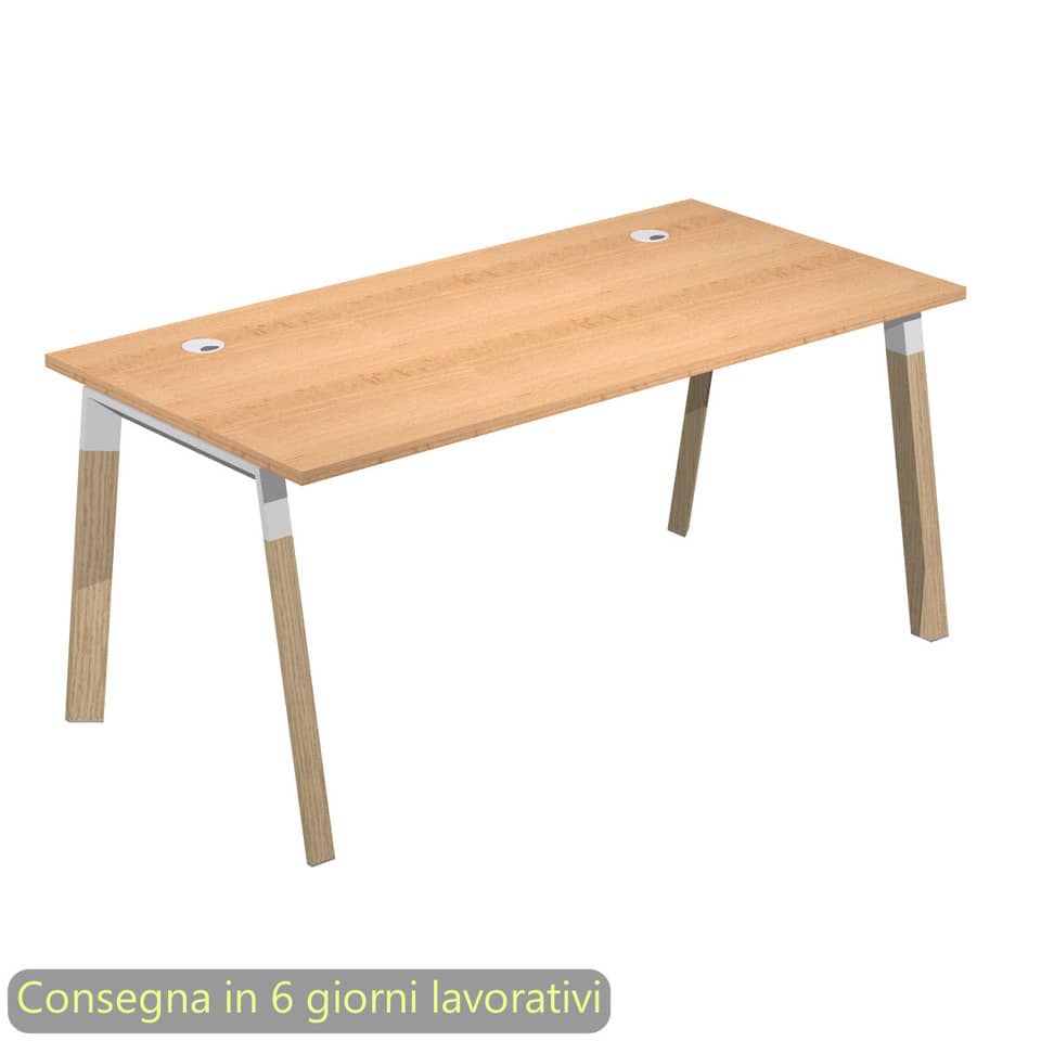 Scrivania piano Faggio 120x80xh.72,5 cm gamba inclinata legno e metallo Bianco Artexport piano Faggio – W120-6-AM