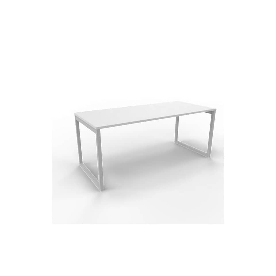 Scrivania piano Grigio 180x80xh.75 cm gamba ad anello in acciaio Argento linea Practika P2 Quadrifoglio - ECSAT180-GR-A
