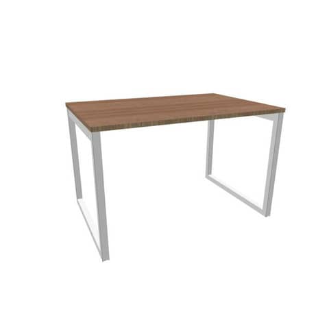 Scrivania piano Noce canaletto 120x80xh.75 cm gamba ad anello acciaio Argento linea Practika P2 ECSAT120-NO-A