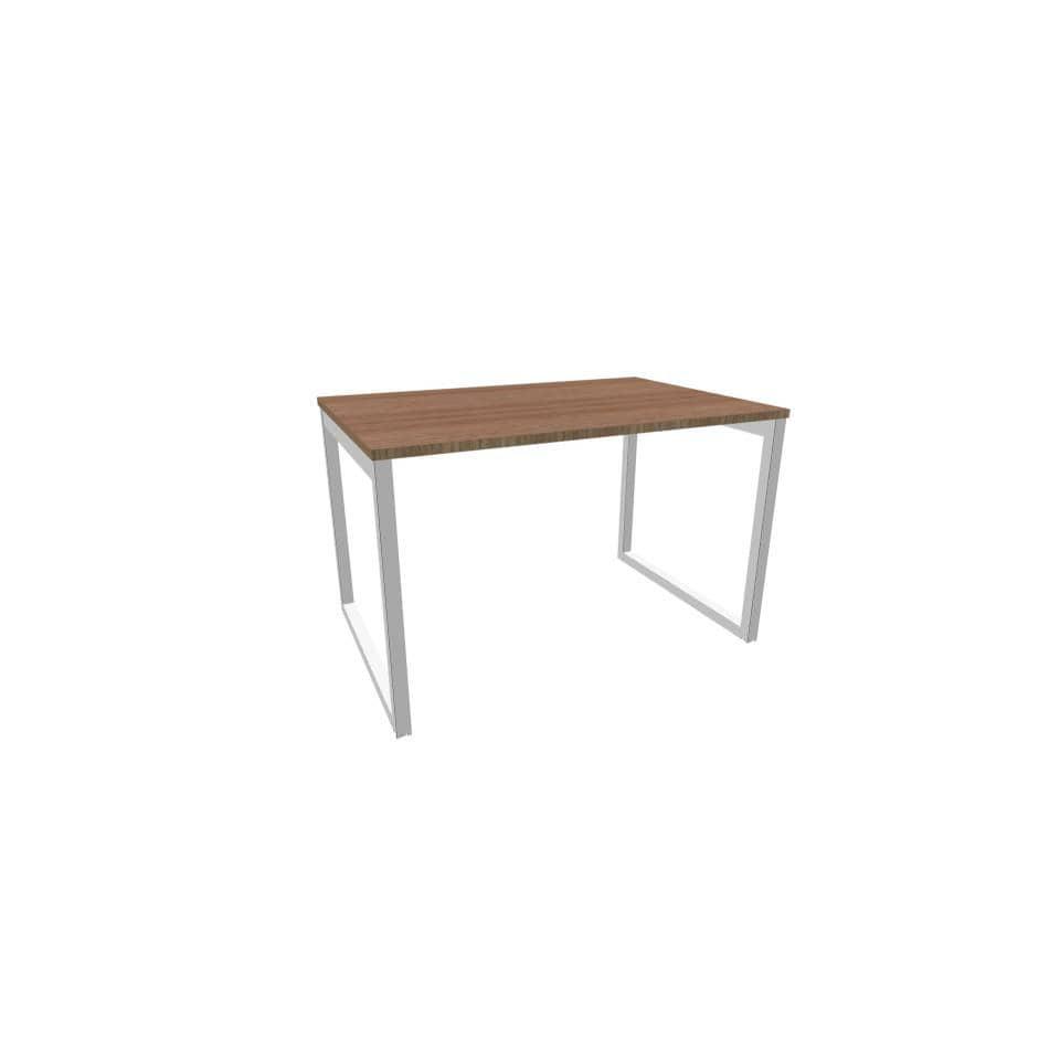 Scrivania piano Noce canaletto 120x80xh.75 cm gamba ad anello acciaio Argento linea Practika P2 ECSAT120-NO-A