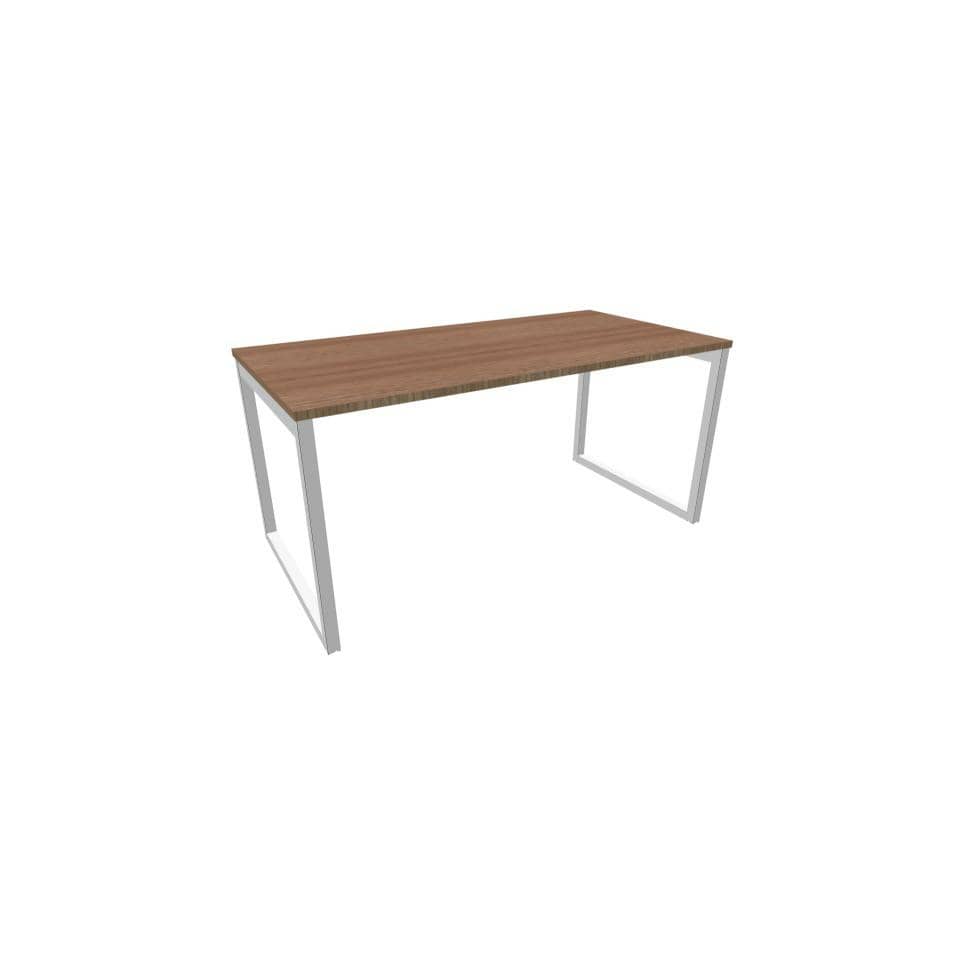Scrivania piano Noce canaletto 160x80xh.75 cm gamba ad anello acciaio Argento linea Practika P2 ECSAT160-NO-A