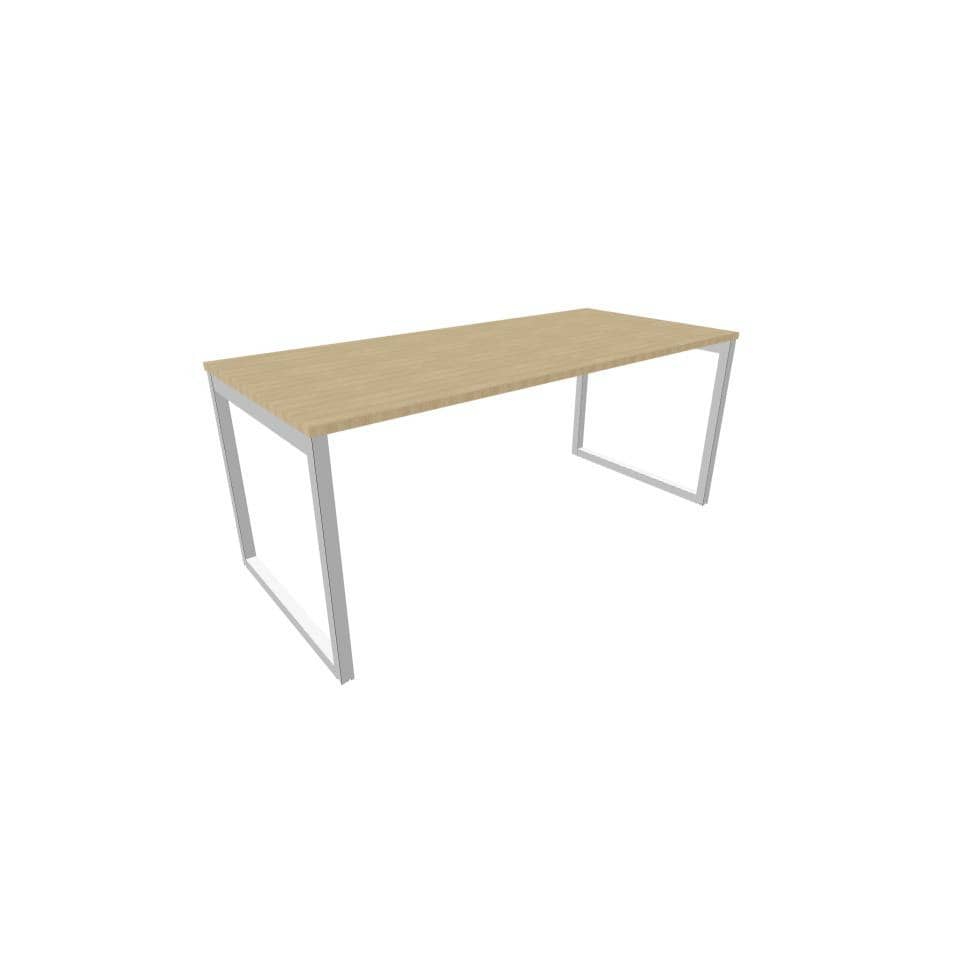 Scrivania piano Rovere 180x80xh.75 cm gamba ad anello in acciaio Argento linea Practika P2 Quadrifoglio – ECSAT180-RK-A