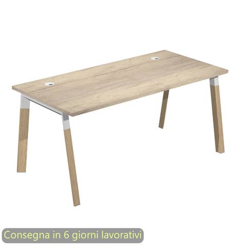 Scrivania Rovere canadese 180x80xh.72,5 cm gamba inclinata legno-metallo Bianco Artexport piano Rovere canadese