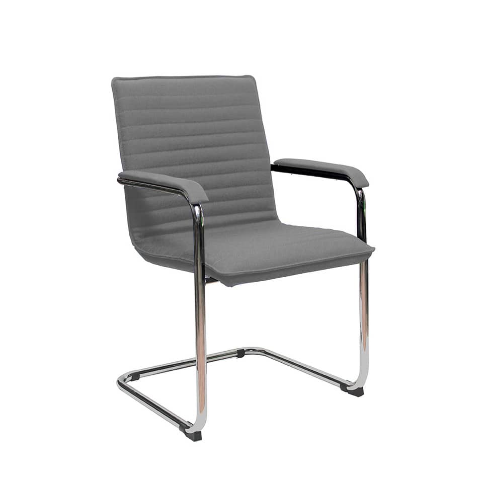 Seduta visitatore su slitta. Altezza totale: 83; profondità totale: 64; altezza schienale: 41; larghezza schienale: 46; larghezza seduta: 48; profondità sedile: 43. Braccioli inclusi.