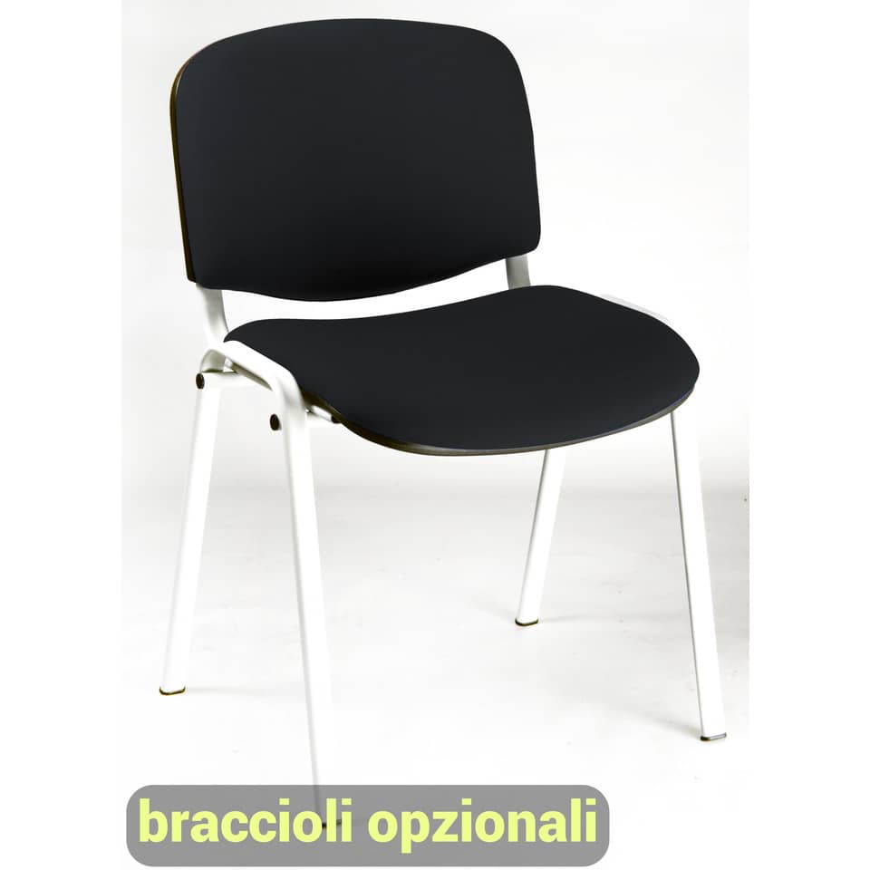 Seduta visitatore 4 gambe. Altezza totale: 80; profondità totale: 54; altezza schienale: 34; larghezza schienale: 48; larghezza seduta: 53; profondità Sedile: 41.Braccioli opzionali.