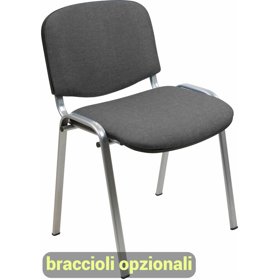 Seduta visitatore 4 gambe. Altezza totale: 80; profondità totale: 54; altezza schienale: 34; larghezza schienale: 48; larghezza seduta: 53; profondità Sedile: 41.Braccioli opzionali.