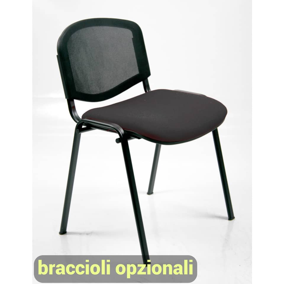Seduta visitatore 4 gambe. Altezza totale: 80; profondità totale: 54; altezza schienale: 34; larghezza schienale: 48; larghezza seduta: 53; profondità Sedile: 41.Braccioli opzionali.