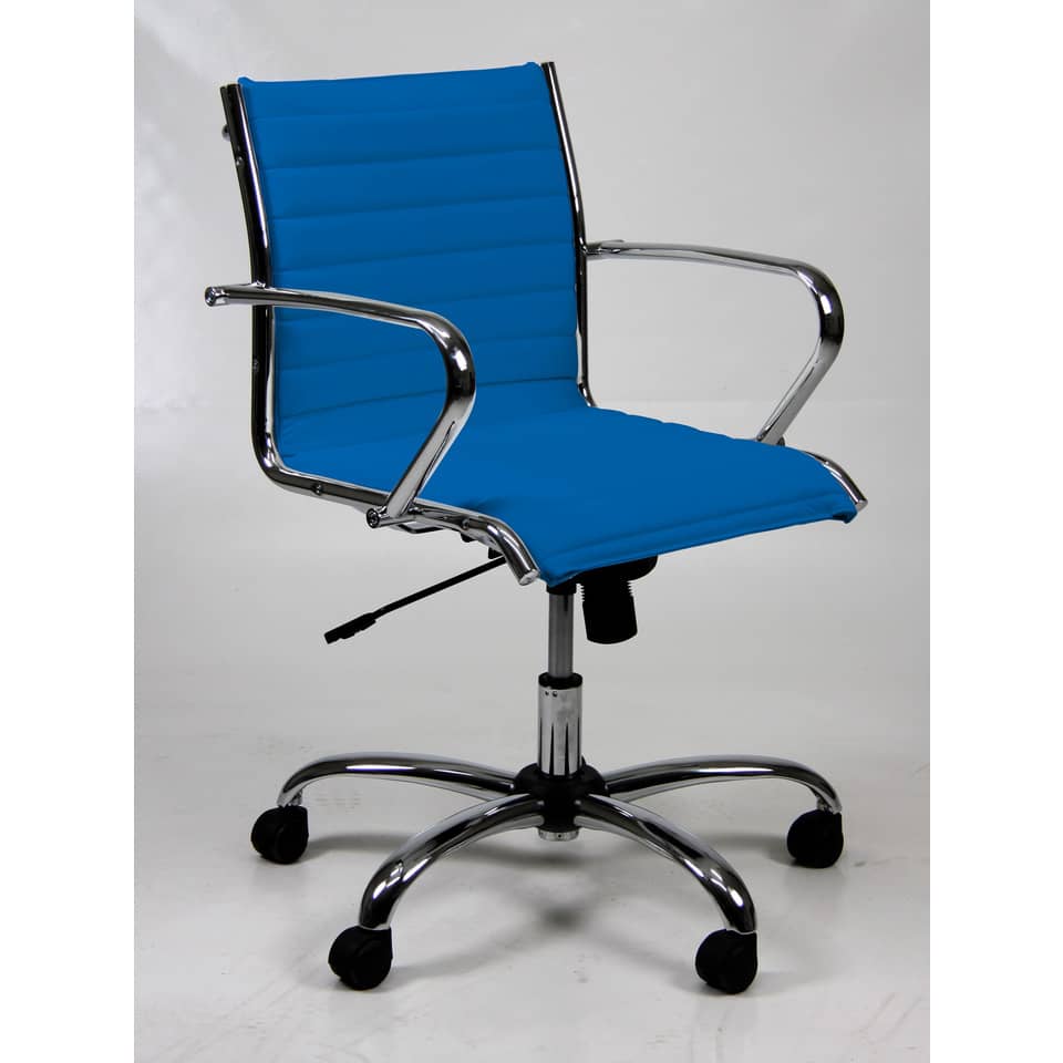Poltrona direzionale girevole con elevazione a gas e meccanismo oscillante con blocchi. Altezza totale: 79-90; profondità totale: 68; altezza schienale: 41; larghezza schienale: 48 larghezza seduta: 50; profondità sedile: 50. Braccioli inclusi.