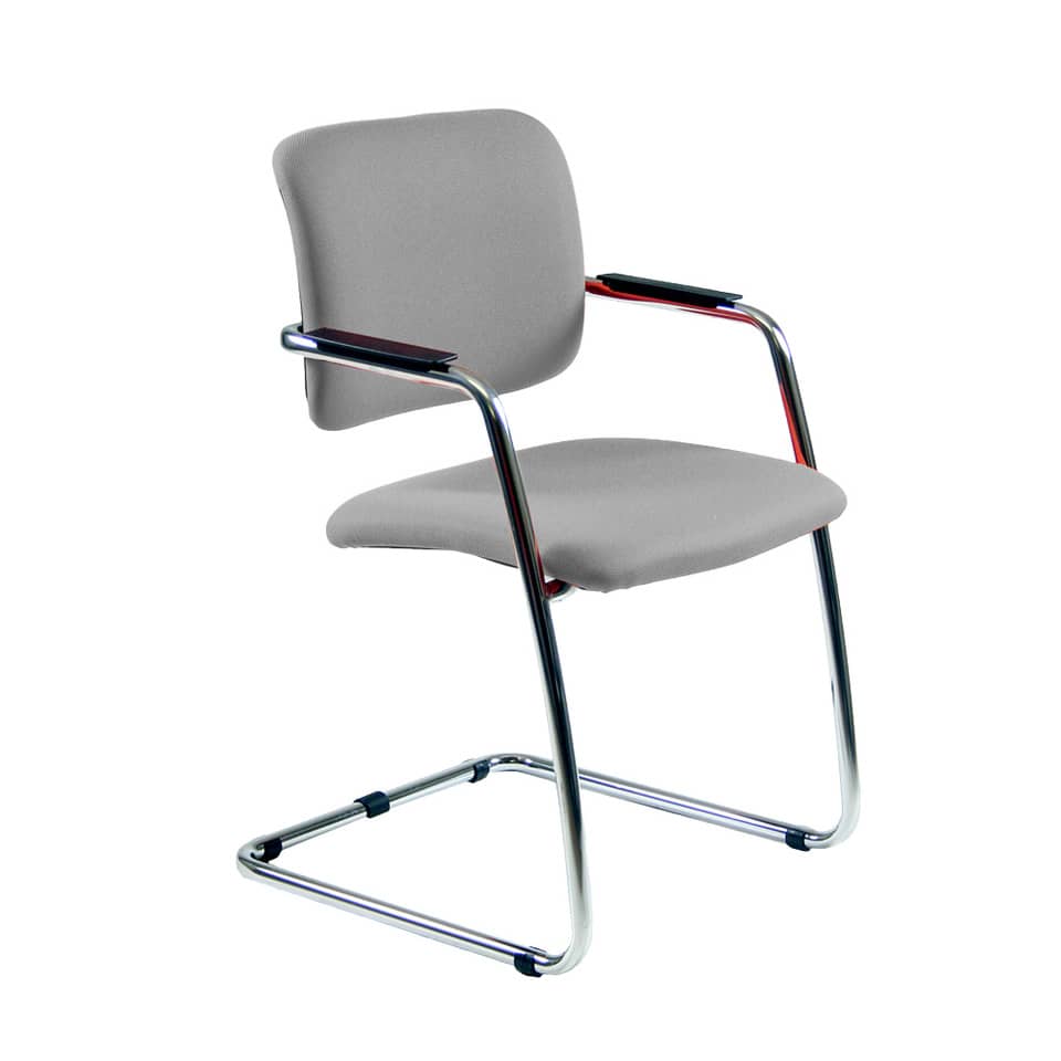 Seduta visitatore con slitta tubolare cromata impilabile. Altezza totale: 83; profondità totale: 59; altezza schienale: 34; larghezza schienale: 50; larghezza seduta: 50; profondità sedile: 45. Braccioli inclusi.