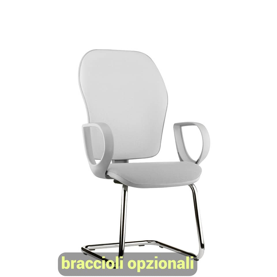 Sedia a slitta cromo HUBBLE GRAFIX UNISIT – Braccioli opzionali – similpelle – Bianco