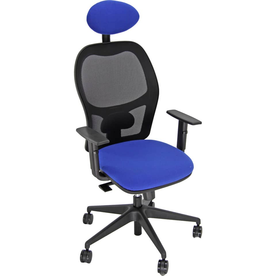 Sedia per ufficio con braccioli Blu HUBBLE GRAFIX UNISIT – con poggiatesta e schienale in rete – tessuto in fili di luce – Braccioli inclusi