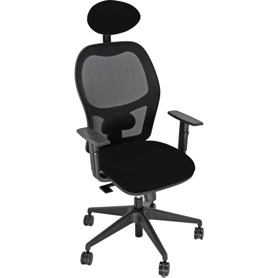 Sedia per ufficio con braccioli Nera HUBBLE GRAFIX UNISIT – con poggiatesta e schienale in rete – tessuto ignifugo – Braccioli inclusi
