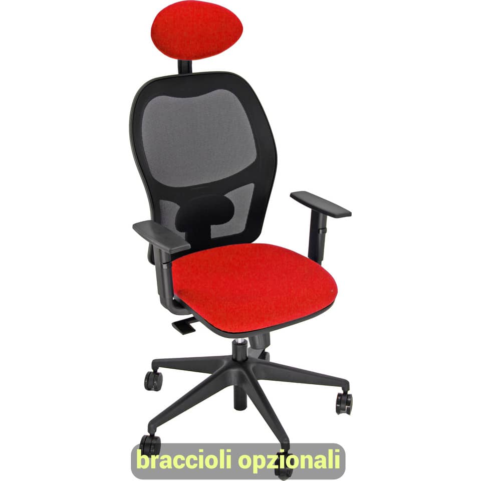 Sedia per ufficio HUBBLE GRAFIX UNISIT – con poggiatesta e schienale in rete – ignifugo – Rosso – Braccioli opzionali