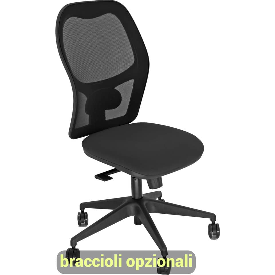 Sedia da ufficio Hubble HUHU UNISIT schienale in rete Nero – rivestimento in polipropilene Nero – Braccioli opzionali