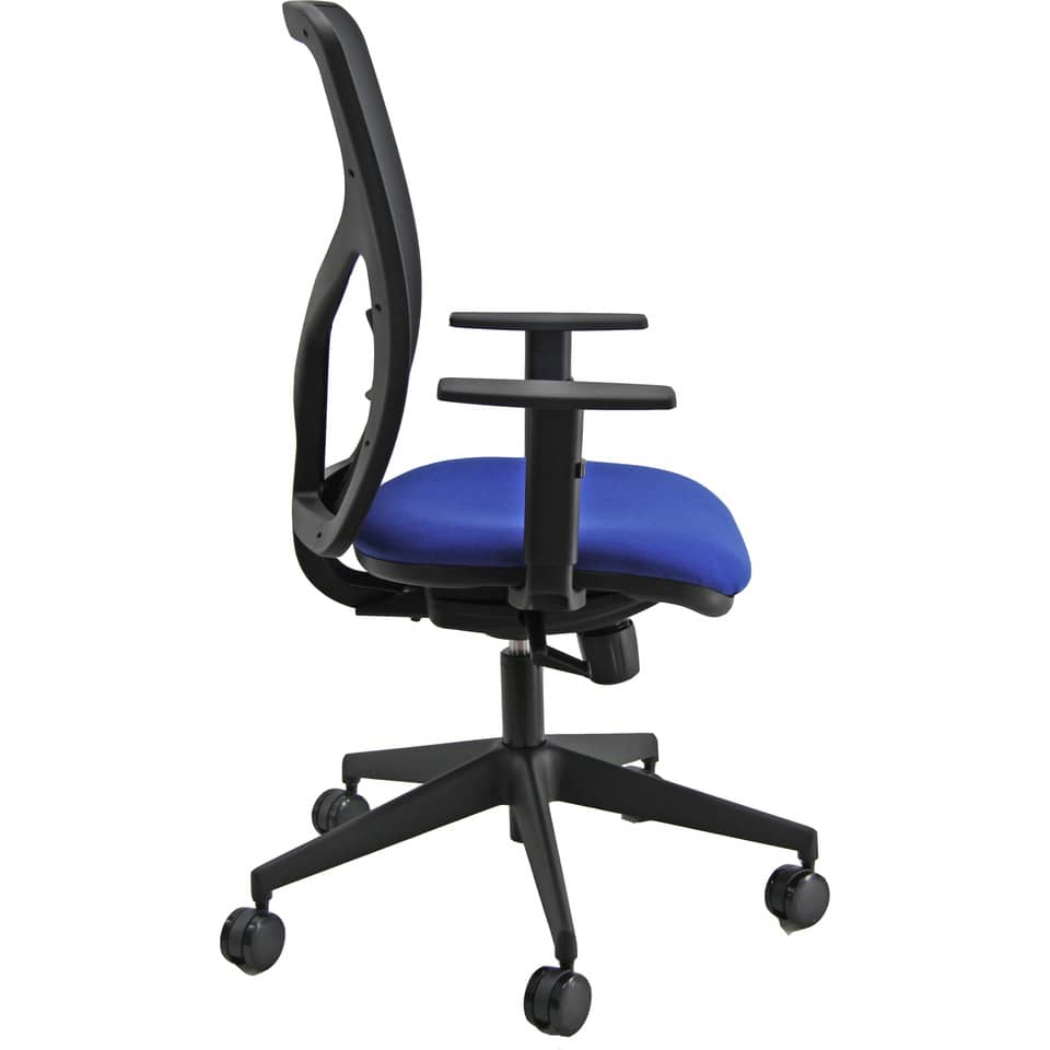 Sedia operativa girevole Unisit Pentagon Y10 schienale in rete Blu – rivestimento polipropilene Nero – con braccioli regolabili