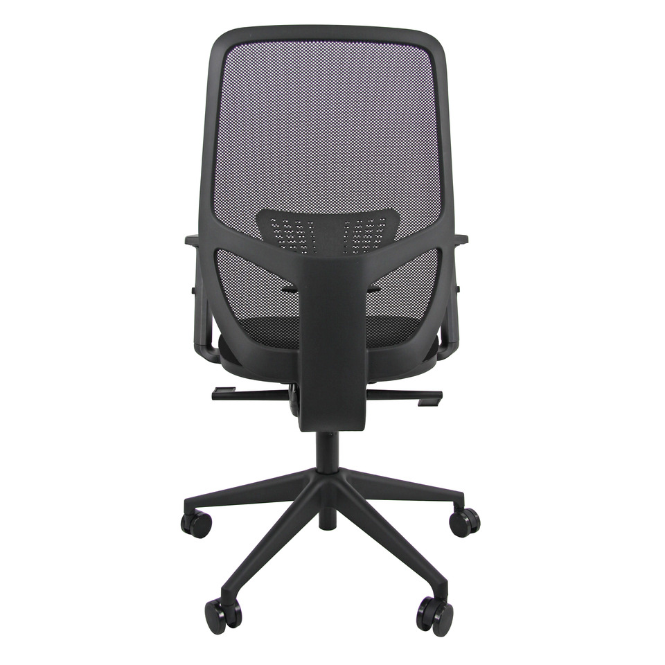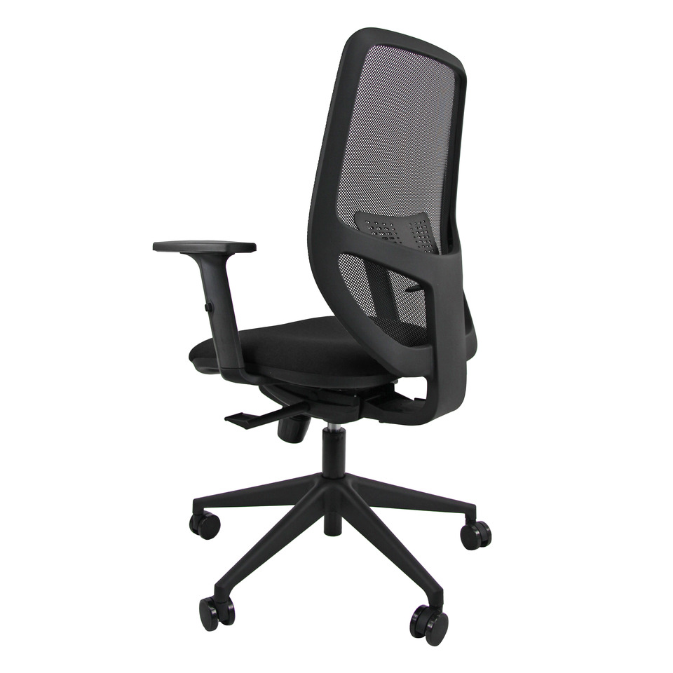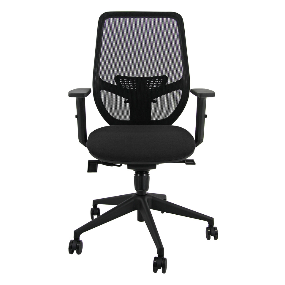 Sedia operativa girevole Aria con schienale in rete nero con supporto lombare regolabile. Rivestimento sedile in tessuto ignifugo antracite. Fornita con braccioli ACCBRFRR2 (D110074). Taglia L. Utilizzo consigliato Standard: 12h. Portata massima 130 kg. Struttura acciaio. Base nylon. Ruote Ø 65 mm nylon. Sedile: materiale esterno: PPL; materiale interno: PPL rinforzato con barre acciaio; spugna: spugna T 25 h 6 cm. Schienale: materiale esterno: nylon; materiale interno: supporto in nylon + rete; Interno/Spugna: schienale in rete. Meccanismi: Elevazione a gasb - Supporto lombare regolabile contatto permanente - Meccanismo synchro con traslatore sedile. schienale a contatto permanente controllo forza spinta schienale movimento di ritorno dello schienale con antishock. Certificazioni: Gas certificato TUV; A norma DL 81/08; Conforme a certificazione EN 1335 A 2020. Altezza totale: 105-118 cm. Profondità totae: 70 cm. Altezza sedile (seduta da terra): 43-55 cm. Larghezza sedile: 47 cm. Larghezza del sedile con i braccioli: 62 cm. Profondità sedile: 46 cm. Altezza schienale: 61 cm. Larghezza schienale: 48 cm. Altezza braccioli da terra: 63 cm. Base Ø 70 cm.