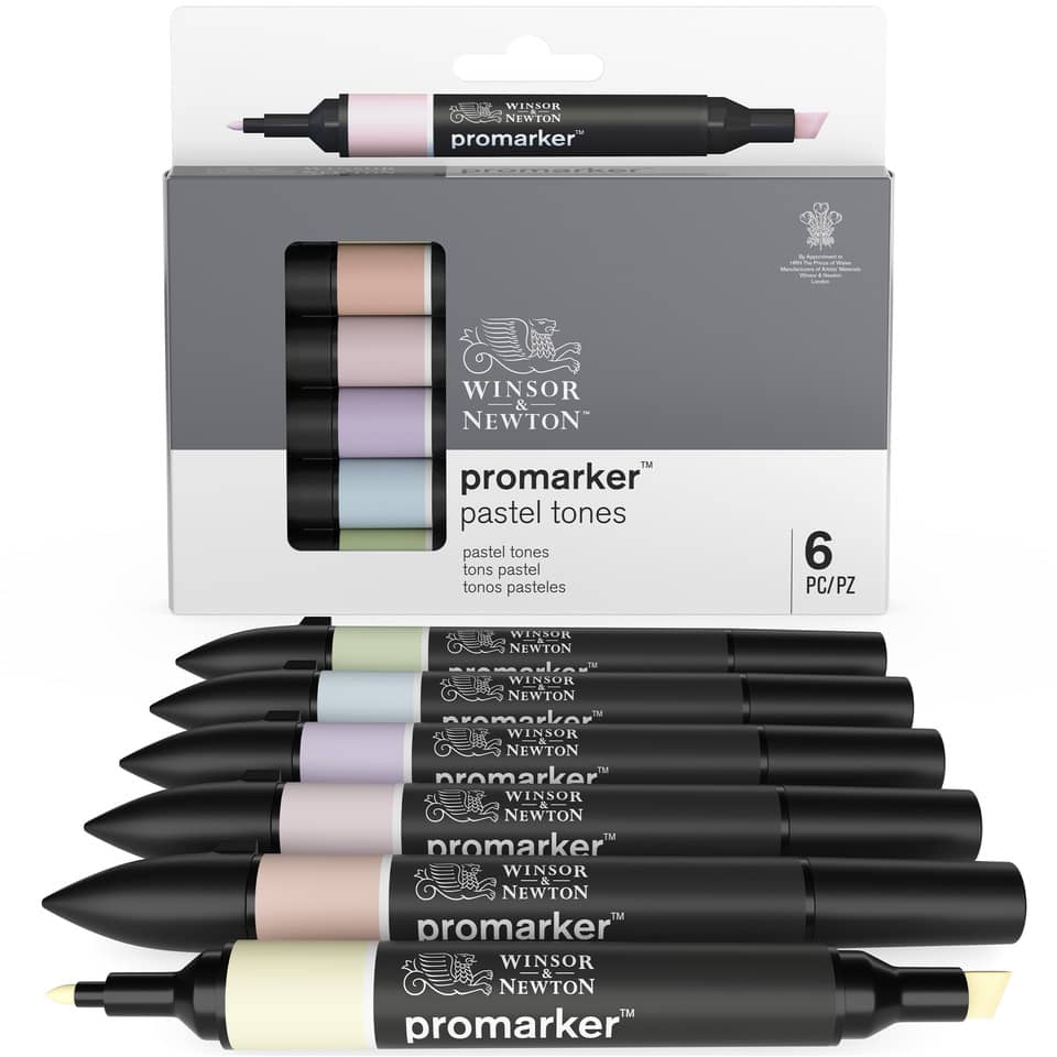Pennarelli Promarker doppia punta fine-larga Winsor&Newton – Assortiti colori pastello (set da 6 pezzi)