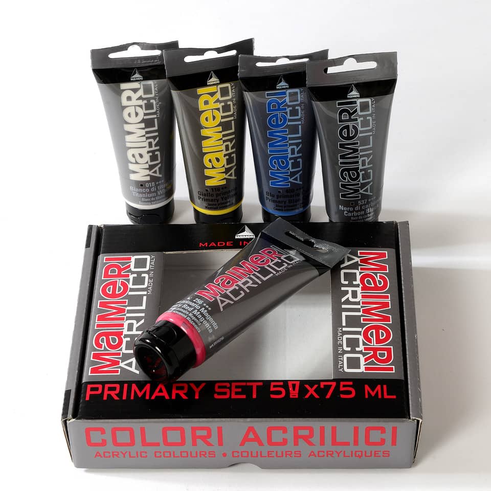 Set colori acrilici primari Maimeri in tubetto 75 ml – 5 Colori Assortiti – M0998190