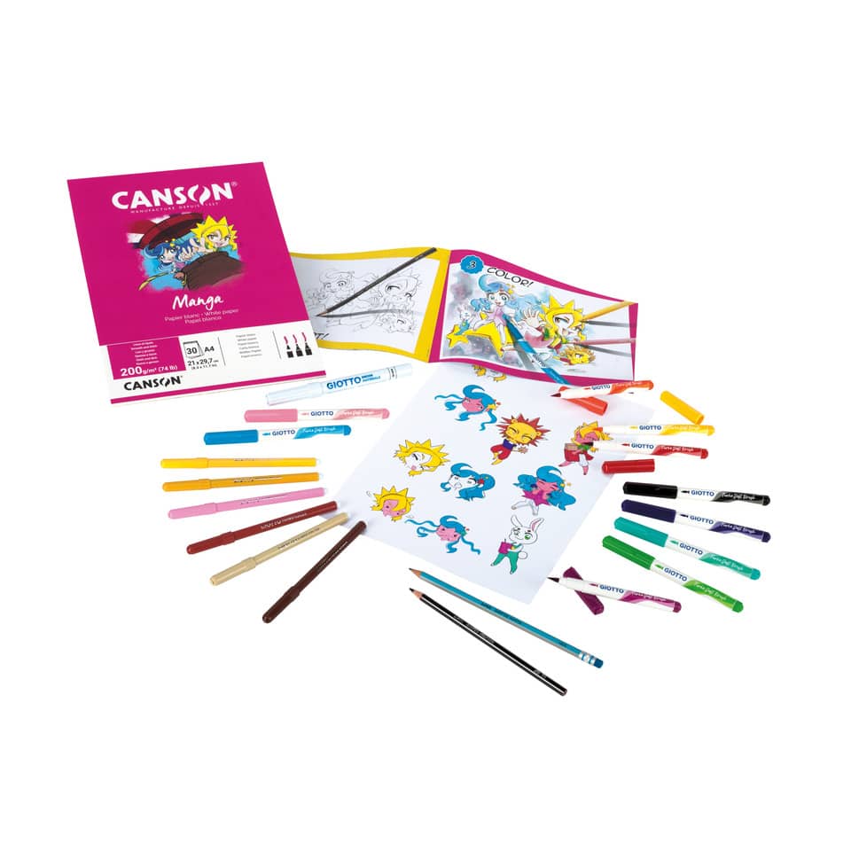 Una novità Art Lab con tutto il necessario per immergersi nel modo dei manga. Per imparare a disegnare e colorare in perfetto stile chibi, super carino e divertente. all'interno della confezione guida creativa e illustrazioni realizzate da Sabrina Sala, autrice appassionata di animazione e fumetti giapponesi. Contenuto: 10x Giotto Turbo Soft Brush - colori clorrici; 6x Giotto Turbo Color - nuances skin tones; 1x Giotto Matita; 1x Giotto Stilnovo nero; 1x pennarello Giotto Decor Materials bianco; 30x fogli - Album Canson carta di qualità A4 200 g/m2; 1x guida creativa con le illustrazioni di Sabrina Sala.