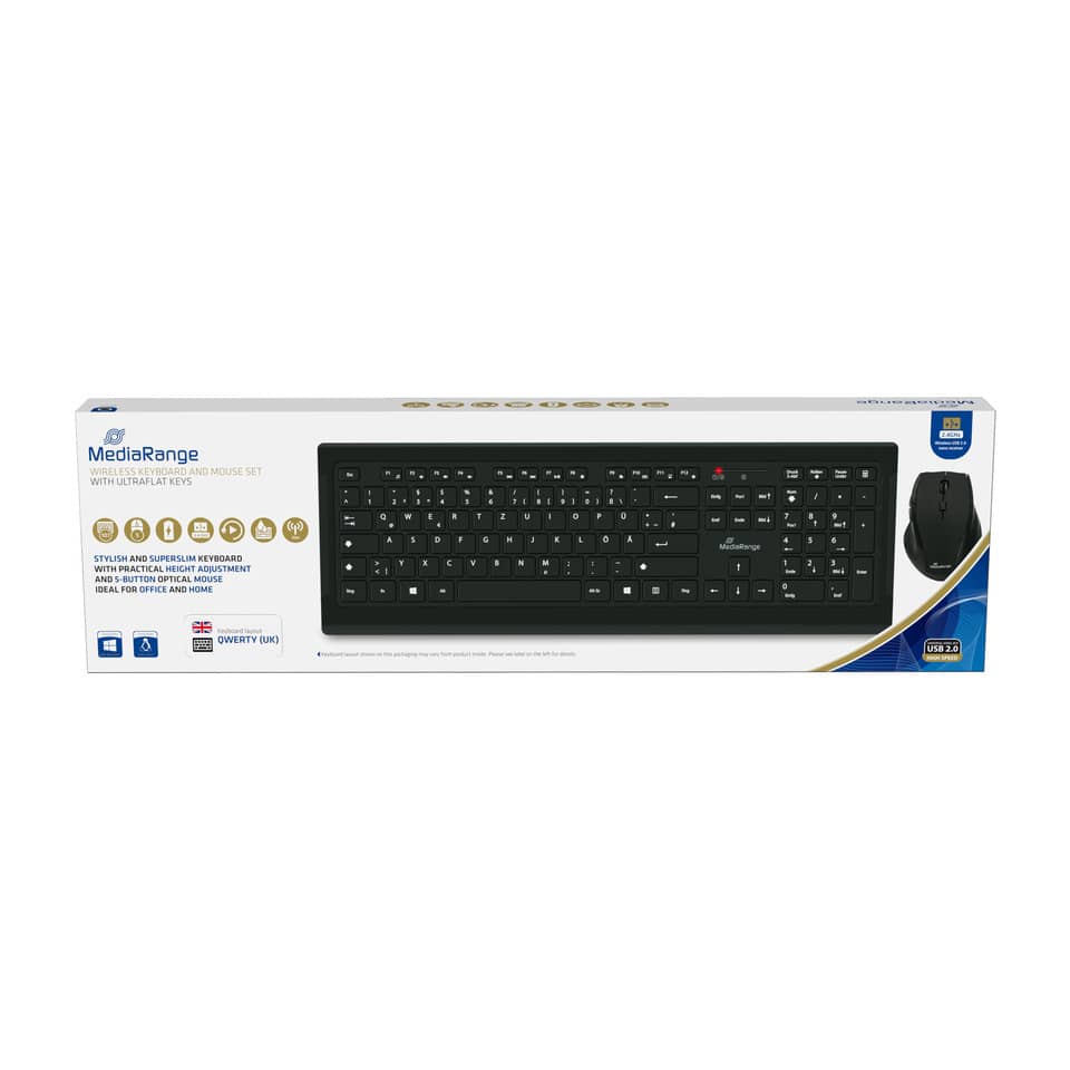 Set tastiera e mouse wireless QUERTY Media Range Nero MROS104-UK