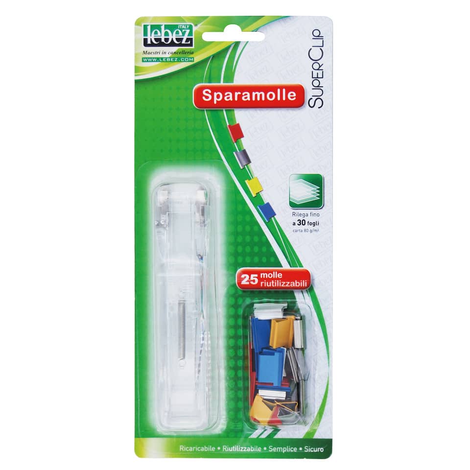 Sparamolle Superclip; blocca fino a 30 fogli; blister completo di 25 molle