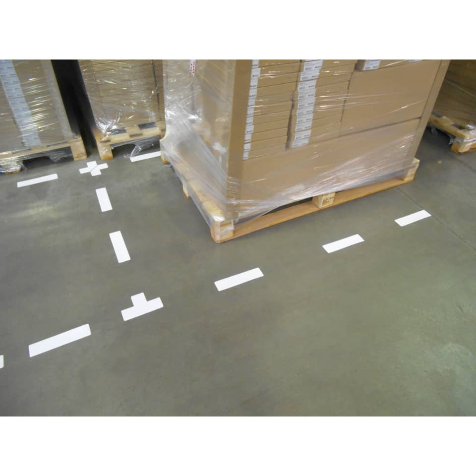 Stickers per pavimenti ideati appositamente per la sicurezza delle aree di lavoro in robusto e resistente PVC (350 µ) con perfetta aderenza. Altamente visibili e durevoli, sono perfetti per la delimitazione e la segnalazione di aree di stoccaggio, aree pedonali, uscite e vie di fuga. Di veloce e più facile applicazione rispetto alla vernice tradizionale, resistono a lavaggi con acqua e con detersivi/prodotti chimici. Permettono un continuo e tranquillo passaggio sia di muletti che di persone, senza creare ingombro. Si possono ottenere varie tipologie di delimitazione combinando gli elementi, ad esempio affiancando 2 L per formare una croce o inserendo una T per creare delimitazioni intermedie. Disponibili in 4 colori ISO standard ad alto impatto visivo. Confezione da 10 pezzi con forma a T. Colore bianco. Dimensione 15 x 5 cm.