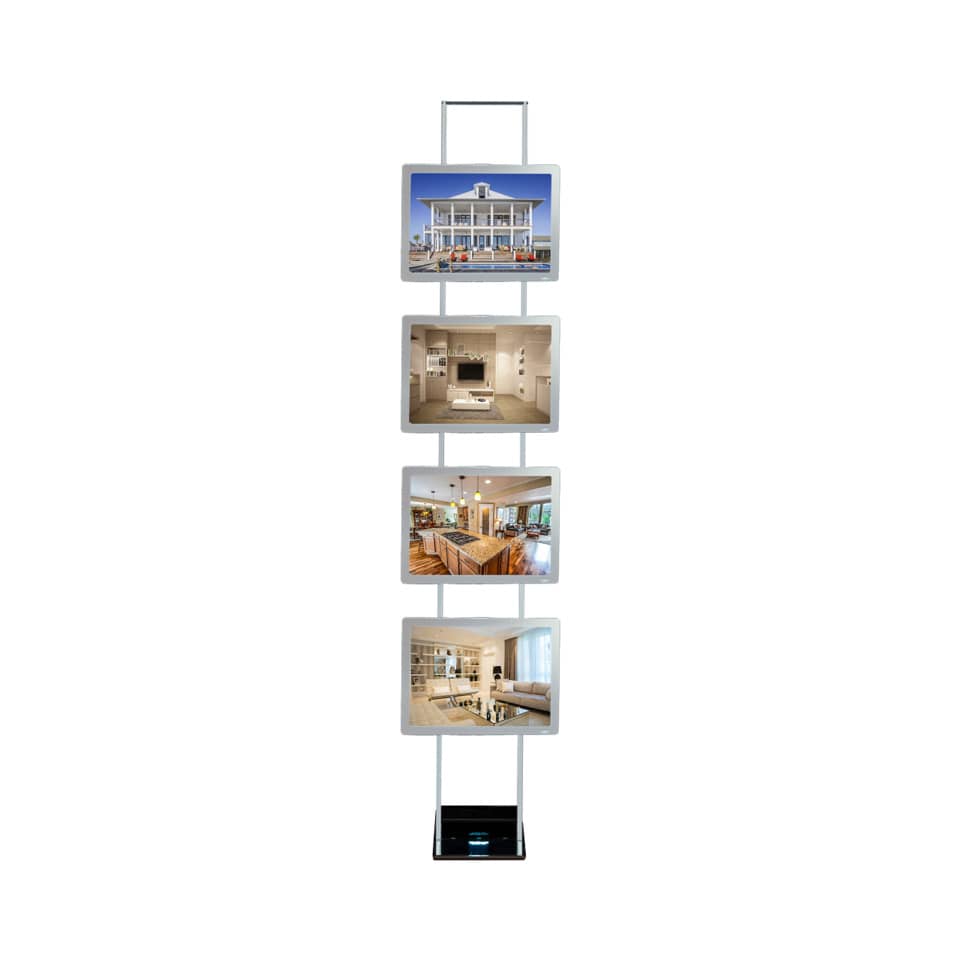 Espositore da terra autoportante Tecnostyl Kit LEDMAG + trasformatore - 4 cornici specchiate A3