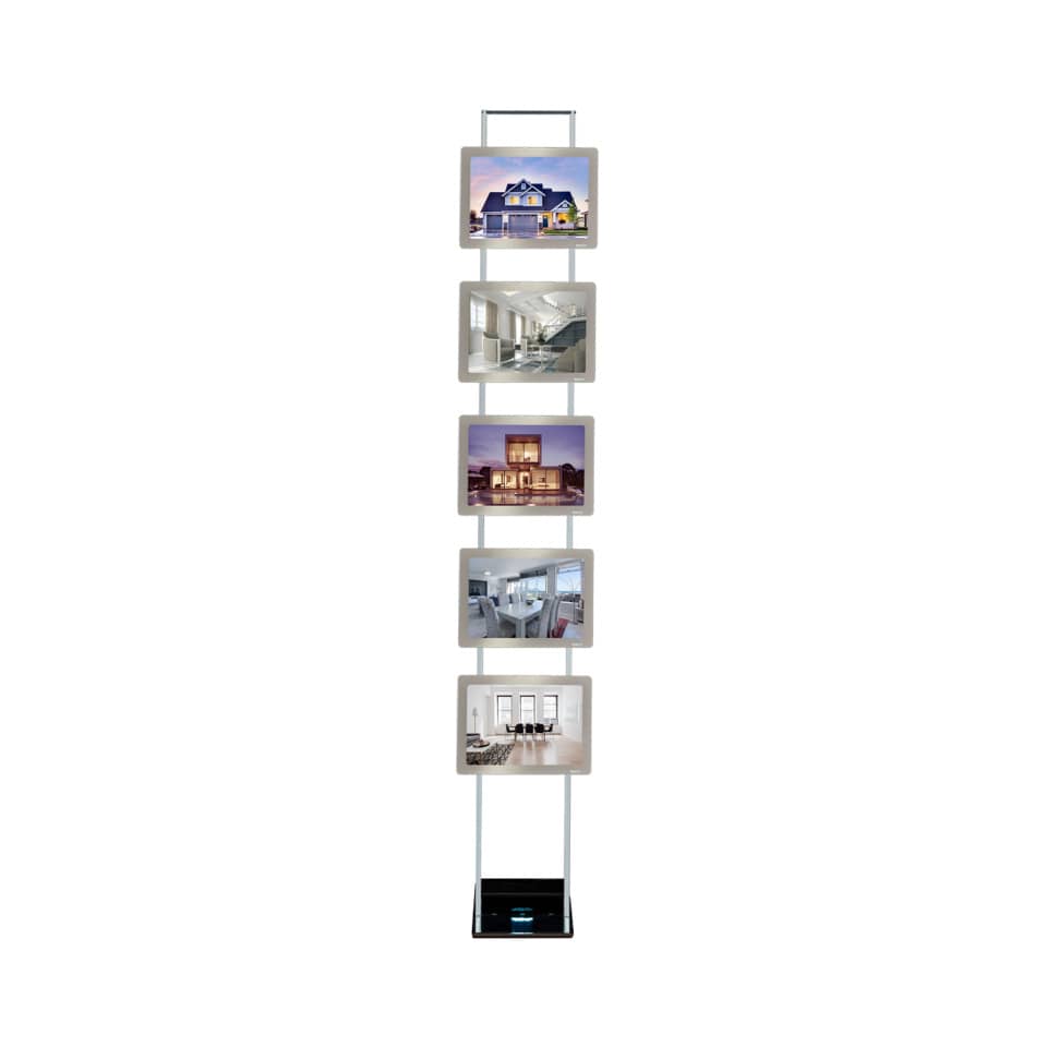 Espositore da terra autoportante Tecnostyl Kit LEDMAG + trasformatore - 5 cornici specchiate A4