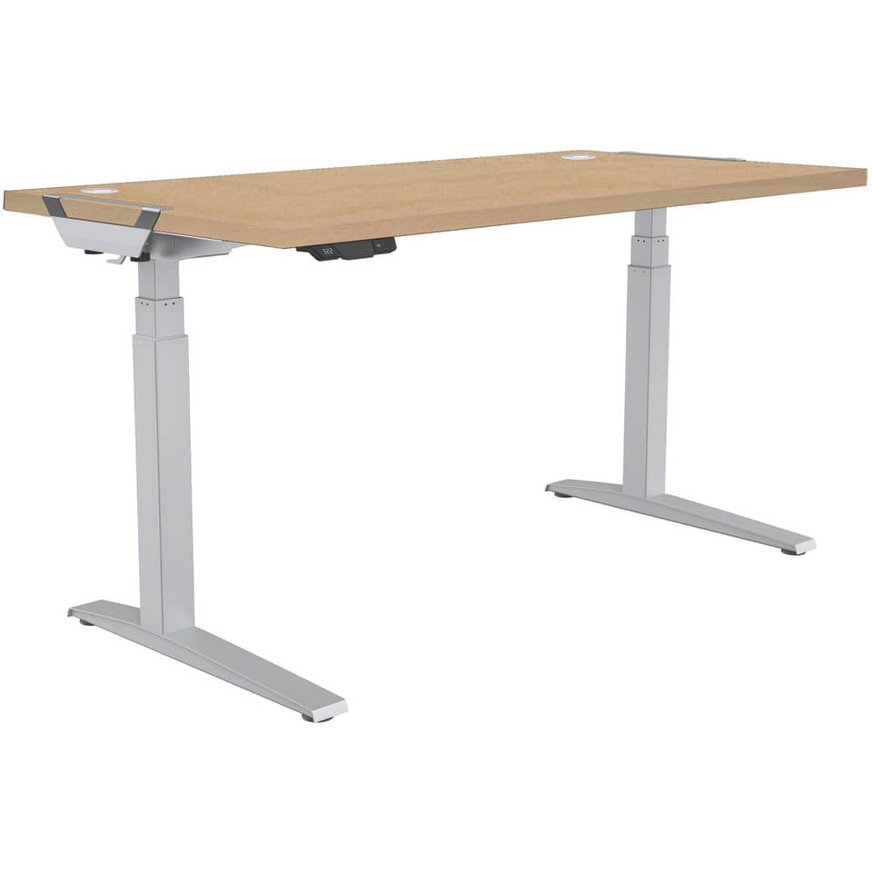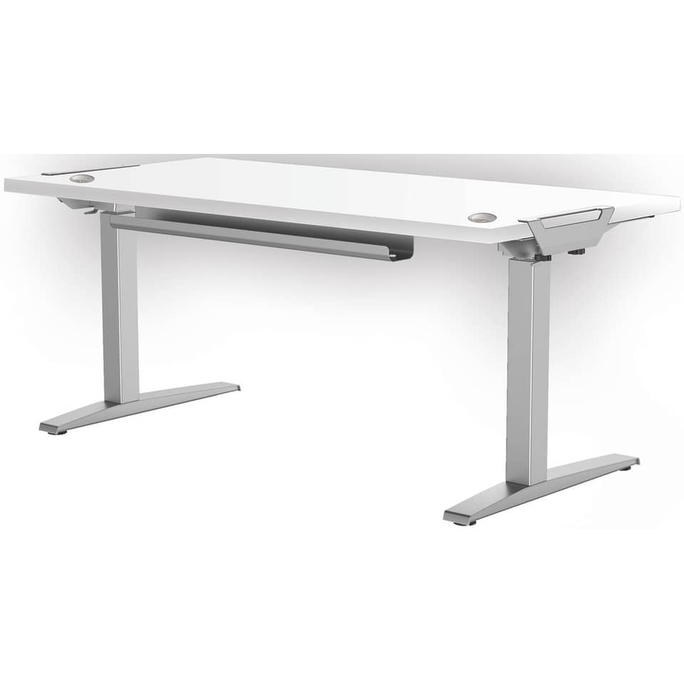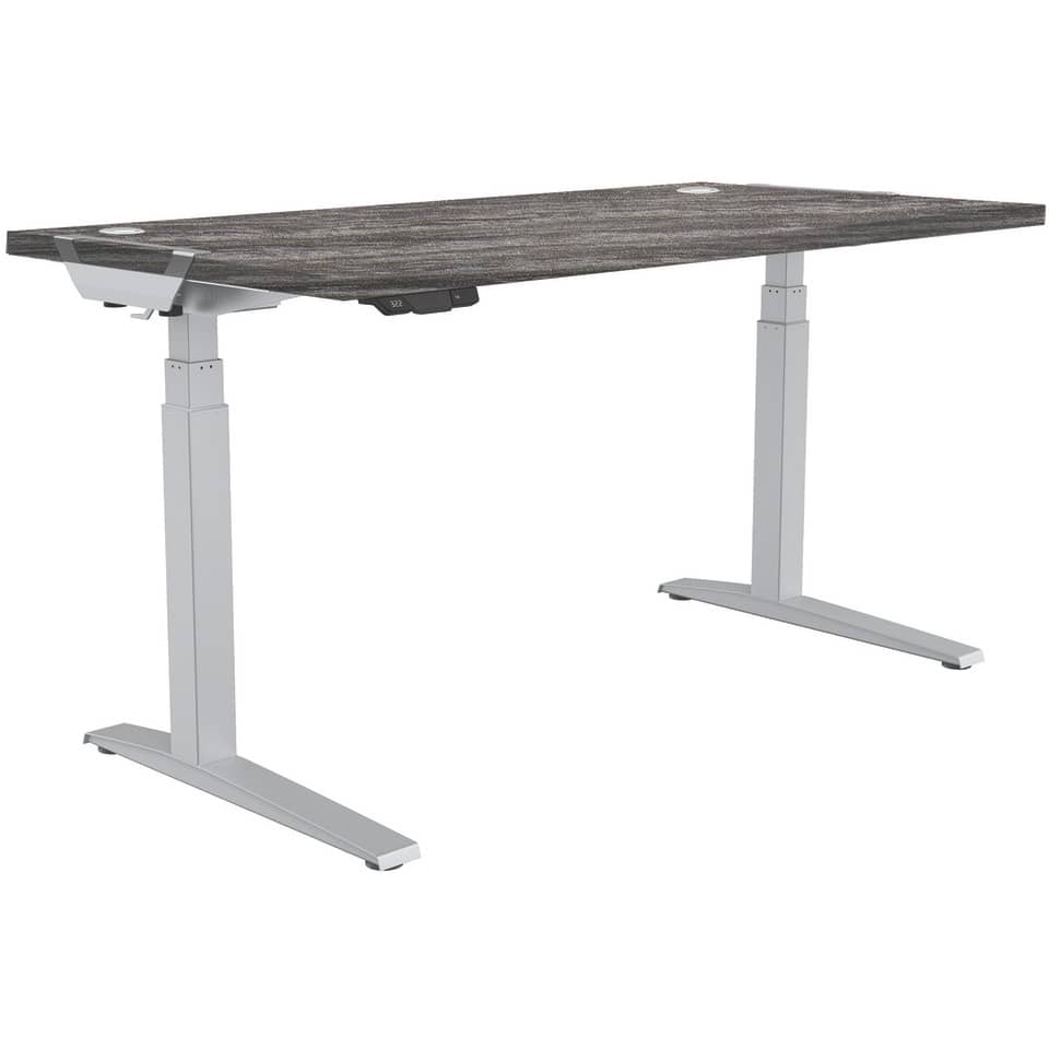 Struttura scrivania ad altezza regolabile LEVADO grigia. Massima praticità e velocità di montaggio: le gambe della base si aprono, si regolano alla larghezza desiderata e si fissano in posizione grazie al Sistema SWIFTLOK. Pannello di controllo FEATHER-LIFT a tecnologia touch, con 4 impostazioni di memoria programmabili. Possibilità di montaggio del piano della scrivania senza uso di attrezzi grazie ai morsetti VERSATOP (la confezione contiene anche la ferramenta per il montaggio tradizionale), può montare piani di lavoro da 120 a 180 cm di larghezza. Regolazione dell'altezza con gambe a 3 stadi, da 64 a 126 cm. Sistema anticollisione: rileva ostacoli ed evita il capovolgimento della scrivania. Si regola a 36mm al secondo e regge fino a 100 Kg. Sistema ordinacavi incluso. Dimensioni L. 152,56 x P. 69,85 x H. 62,23 cm. I ripiani scrivania abbinabili a questa struttura sono i seguenti codici: D128312, D128313, D128314, D128315, D128316, D128317, D128318, D128319, D128320, D128321, D128322, D128323, D128324, D128325, D128326, D128327 e D128328.