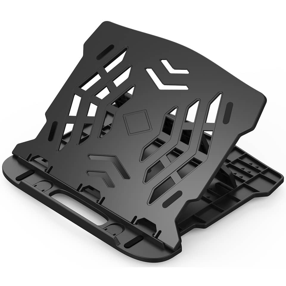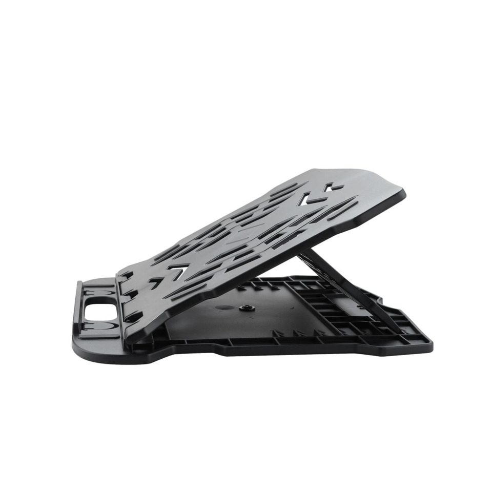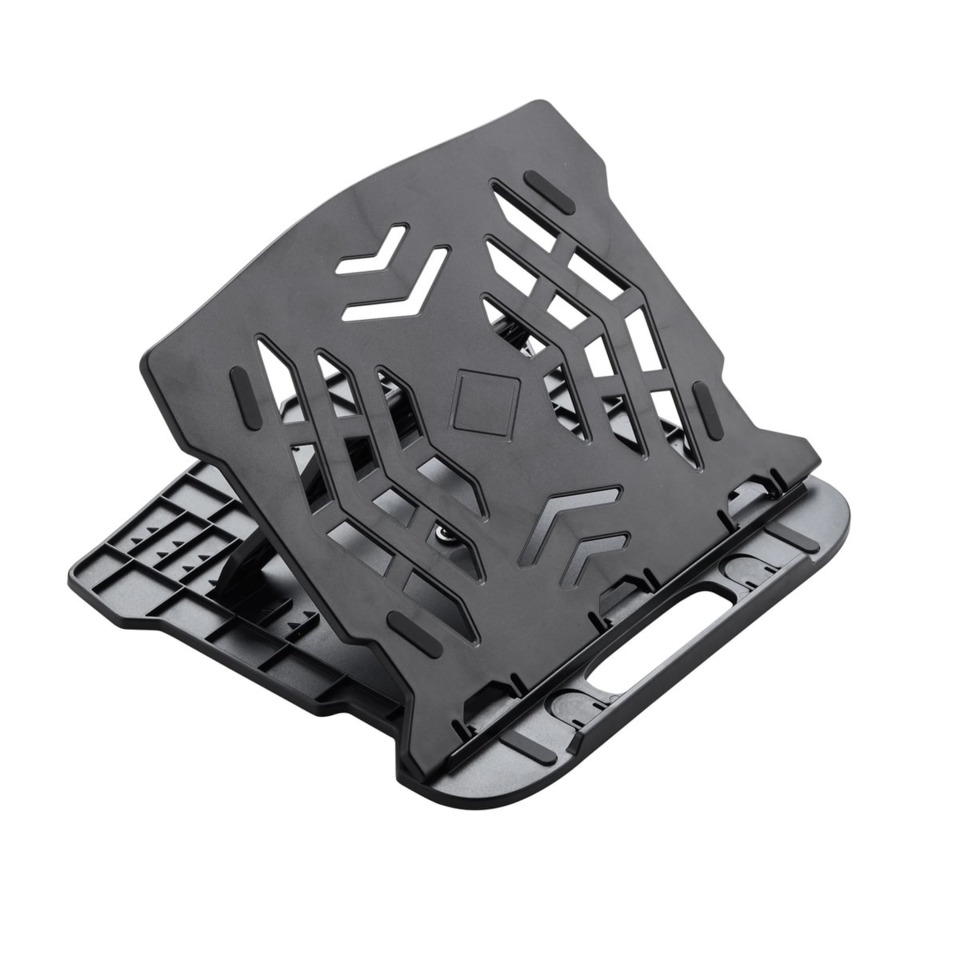 Supporto laptop con base rotante nero. Dimensioni: 25,5 x 1,8 x 28 cm.