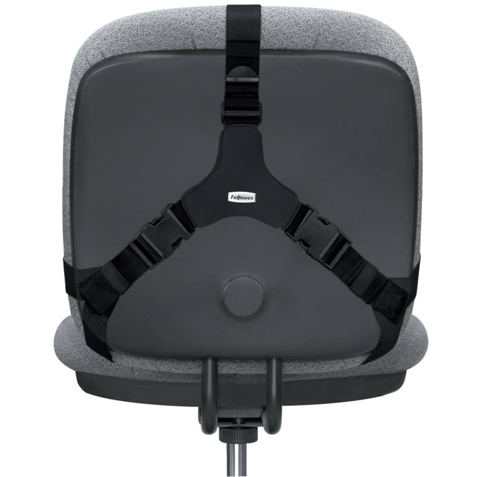 Il Supporto lombare professional series della Fellowes è facilmente adattabile a tutte le sedie grazie all’esclusivo sistema a tre fibbie che mantiene il supporto in posizione senza necessità di aggiustamenti.