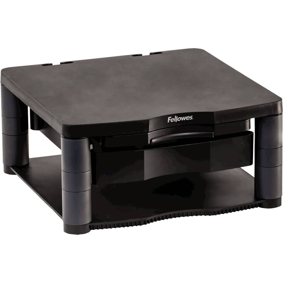 L'ergonomia è un elemento chiave per la salute e la produttività, e il Supporto FELLOWES Premium Plus è progettato per soddisfare queste esigenze. Alzando lo schermo all'altezza degli occhi, si riduce la tensione sul collo, sulle spalle e sulla schiena, prevenendo dolori e affaticamento. La sua dimensione di 34,3x33,3x6,4-16,5 cm offre un’area di supporto ampia e stabile per monitor di diverse dimensioni, adattandosi a varie configurazioni di postazione. La possibilità di regolare l'altezza tra 6,4 e 16,5 cm garantisce una personalizzazione ottimale, consentendo di adattare il supporto alle proprie esigenze specifiche. Questo favorisce una postura più naturale ed efficiente durante le lunghe sessioni di lavoro o di intrattenimento. Questo prodotto aiuta a creare un ambiente di lavoro più confortevole e sano, incrementando la concentrazione e la produttività. Inoltre, l'ampio spazio sottostante può essere utilizzato per riporre tastiera, mouse o altri accessori, liberando spazio sulla scrivania e mantenendo un ambiente ordinato.