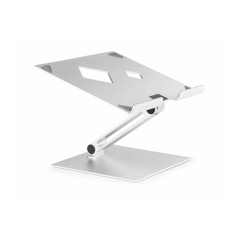 RISE supporto universale regolabile per pc portatili e tablet grigio metallizzato da 10'' a 17'' (fino a 5 kg). Altezza e angolo di lettura personalizzabili per un posizionamento ergonomico del dispositivo. Permette di utilizzare il pc portatile come schermo (in abbinamento a mouse e tastiera aggiuntivi). Elevata stabilità per lavorare in sicurezza. I gommini antiscivolo proteggono il dispositivo dai graffi. Pieghevole, salvaspazio e comodo da spostare. Ottima dissipazione del calore grazie ai fori di ventilazione e alla base in alluminio. L'ampia fessura frontale permette di aprire e chiudere il notebook facilmente. Realizzato in alluminio da 3,5 mm di spessore che lo rende estremamente robusto e permette di supportare il notebook in modo sicuro e affidabile.