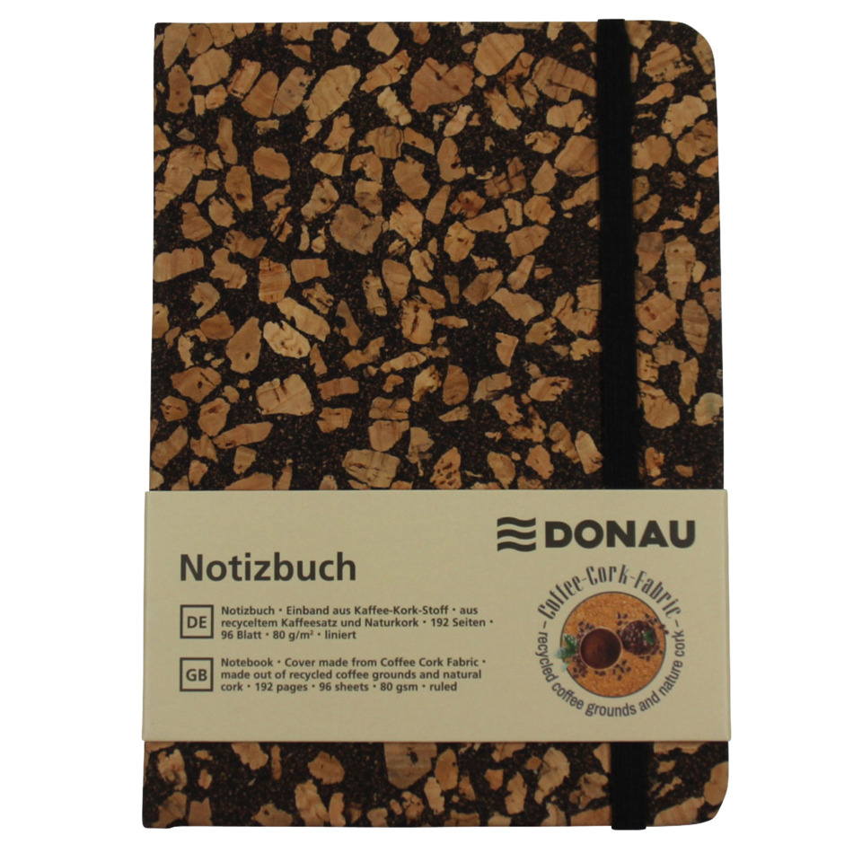 Taccuino nel formato A6 con copertina realizzata in tessuto di caffè-sughero (substrato di caffè riciclato e sughero naturale). Composizione: 96 fogli di carta riciclata da 80 g/m² a righe. Dimensioni del formato: 105 x 142 mm. Disponibile in confezione da 3 pezzi.