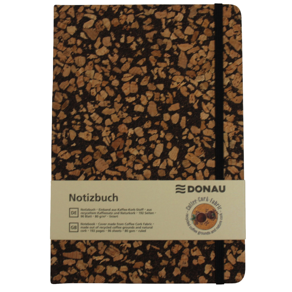 Taccuino nel formato A5 con copertina realizzata in tessuto di caffè-sughero (substrato di caffè riciclato e sughero naturale). Composizione: 96 fogli di carta riciclata da 80 g/m² a righe. Disponibile in confezione da 3 pezzi.