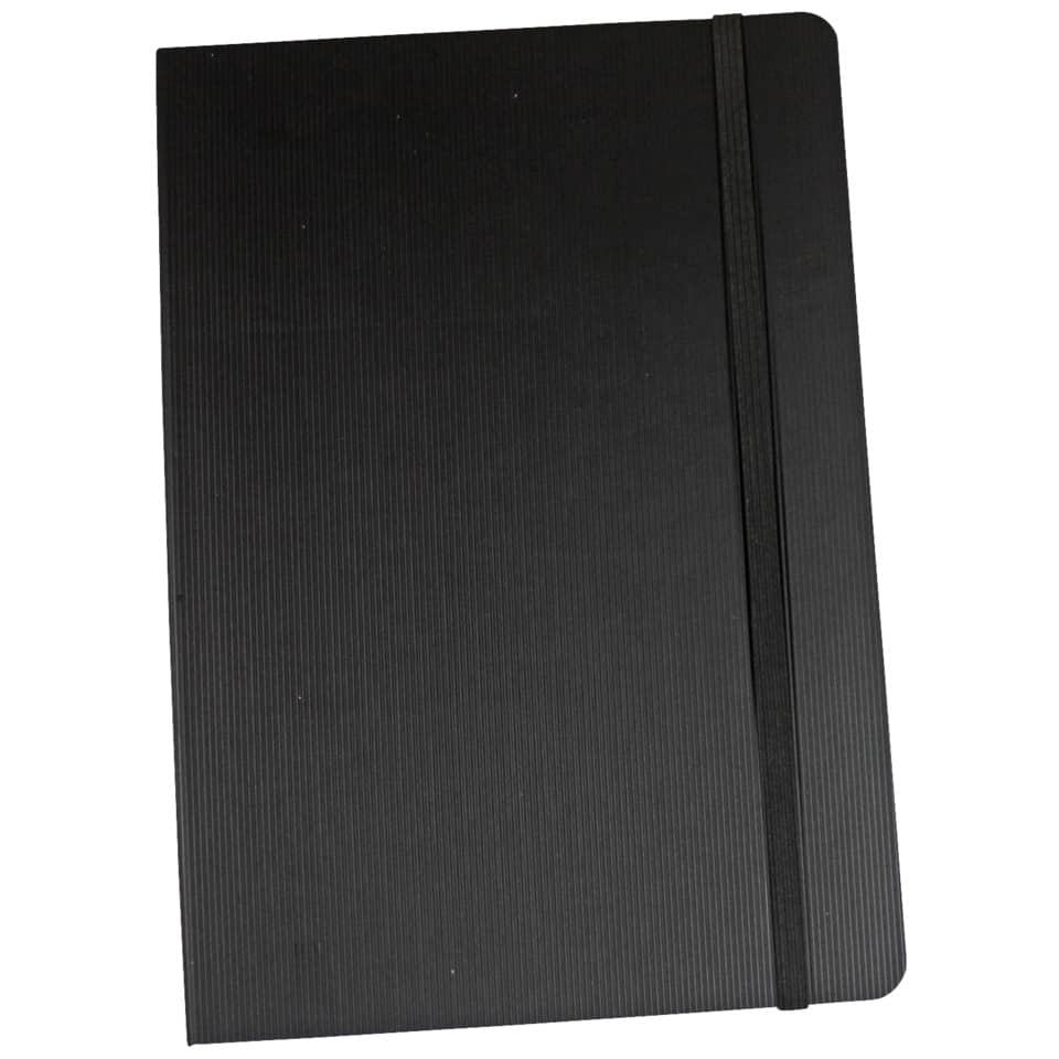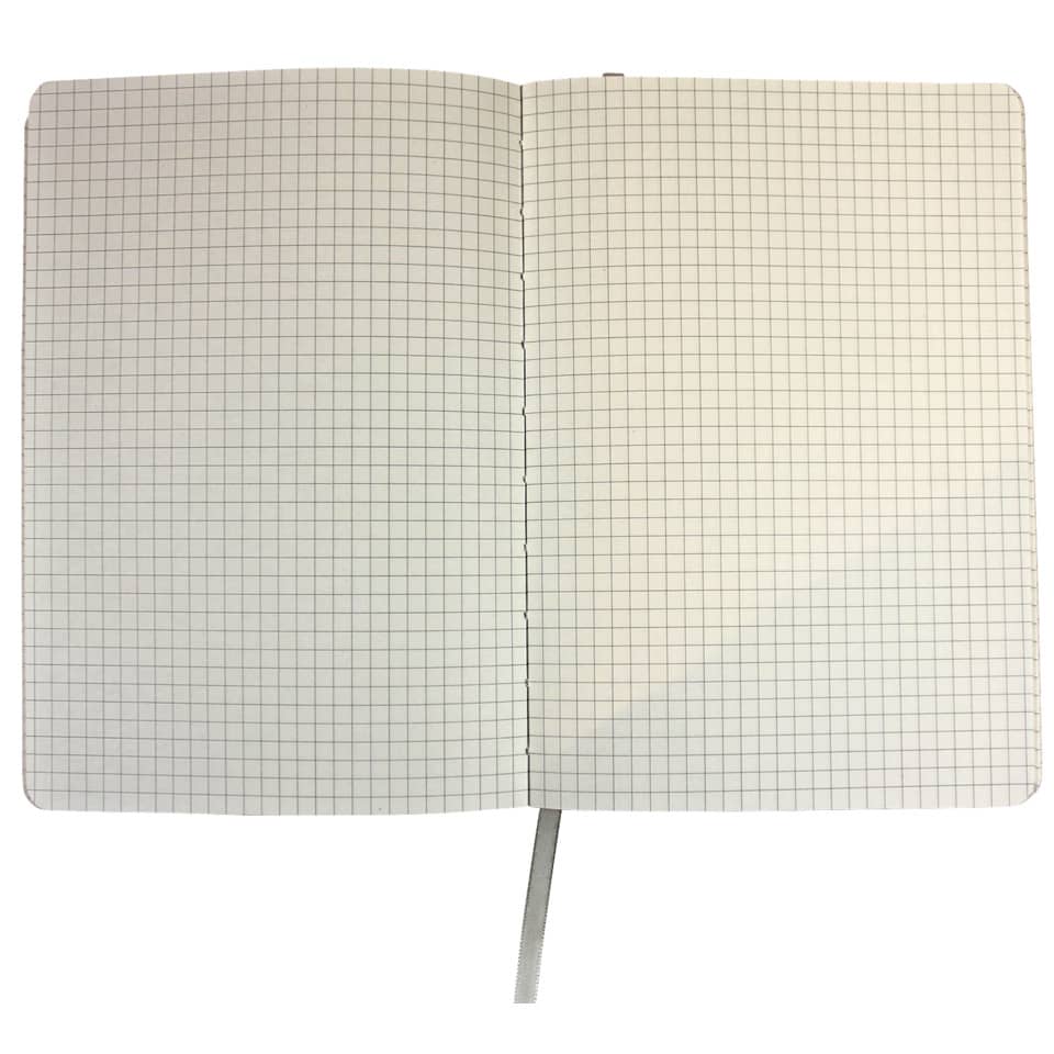 Taccuino da 95 fogli con copertina morbida in similpelle. Chiusura ad elastico e segnalibro. Carta da 80 g/mq, tasca per archiviare piccoli appunti. Quadretti A5 nero.