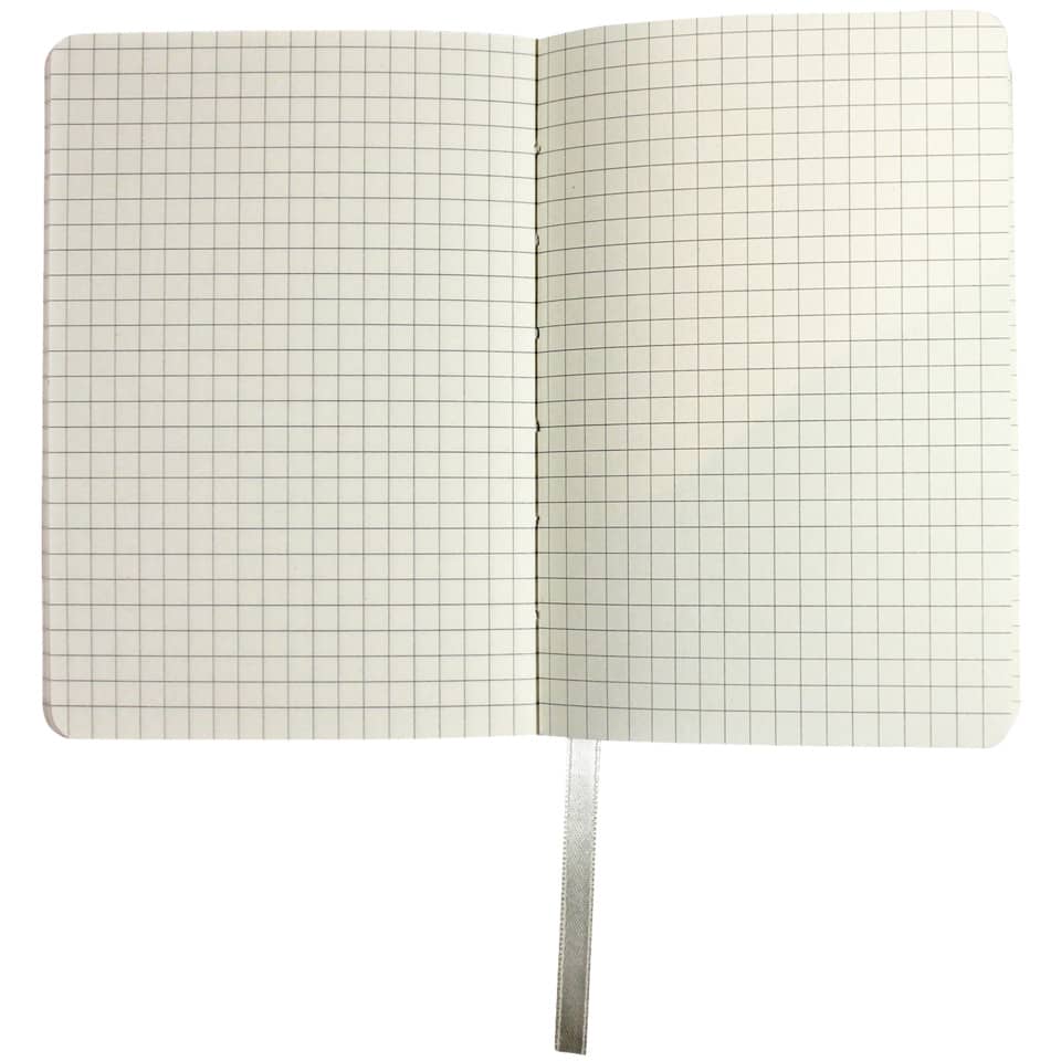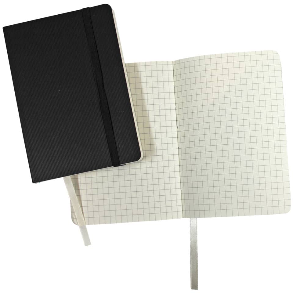 Taccuino da 95 fogli con copertina morbida in similpelle. Chiusura ad elastico e segnalibro. Carta da 80 g/mq, tasca per archiviare piccoli appunti. Quadretti A6 nero