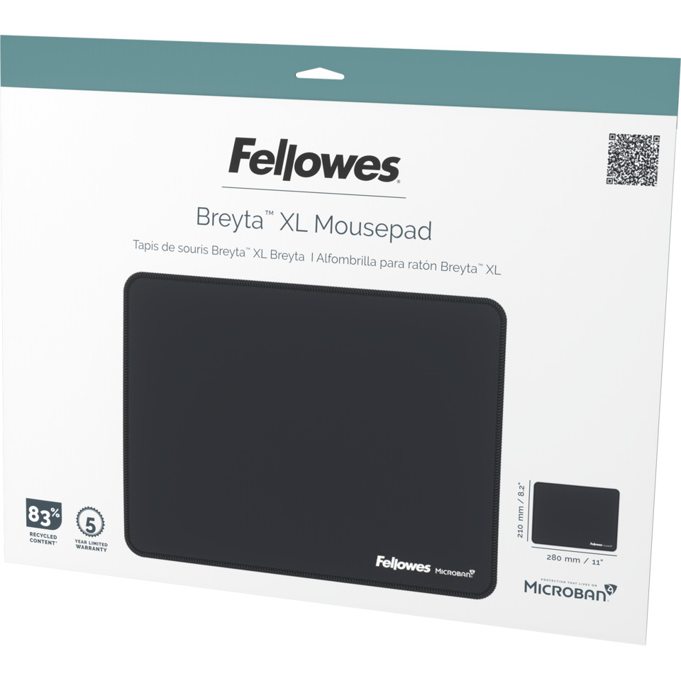 Tappetino mouse XL Fellowes Breyta con antibatterico Microban 28×21 cm – nero 100138995