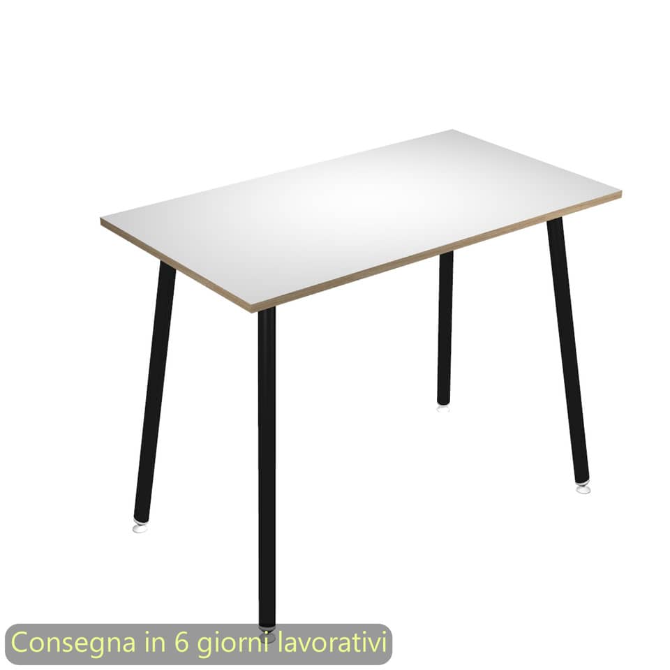 • Materiali Resistenti: Gambe in metallo nero e piano in melaminico bianco.