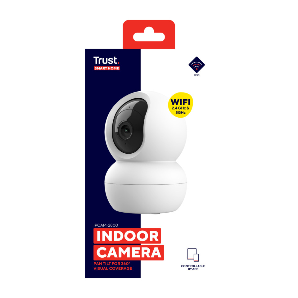 Telecamera di sicurezza per interni a 360° con allarme sonoro per una sicurezza ottimale. Visione a 360° grazie alla funzione pan e tilt. Funzione di tracciamento: possibilità di seguire automaticamente gli oggetti in movimento. Rilevamento umano: evita falsi allarmi, ad esempio dovuti al passaggio di animali domestici. Ricezione di notifiche push quando vengono rilevati movimenti e/o suoni. Alta qualità dell'immagine di 2MP. Nessun costo di abbonamento: funziona con l'app gratuita Trust Wifi. Funziona su 2,4 e 5 GHz. Visione notturna: anche al buio un'immagine nitida grazie alla modalità di visione notturna. Dimensioni compatte: 72x72x109 mm. Microfono incorporato per parlare attraverso la telecamera. Sirena incorporata: dissuade i visitatori indesiderati attivando un allarme quando viene rilevato un movimento. Può essere azionata anche manualmente tramite l'app. Archiviazione su scheda SD (max 256 GB) (non inclusa). Contenuto pack: telecamera di sicurezza a 360° - materiale di montaggio - cavo di alimentazione da 2 m - adattatore di alimentazione - manuale d'uso.